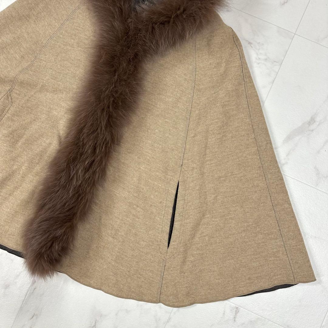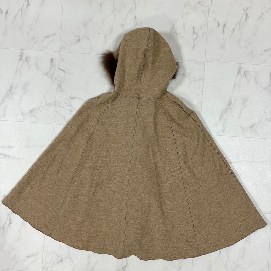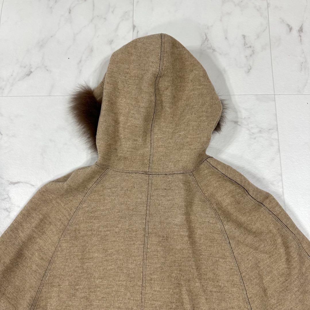 【美品】PRIMATTIVO Hanae Mori Sports ハナエモリスポーツ フード付き ウールポンチョコート フォックスファー取り外し可能 38(M相当)