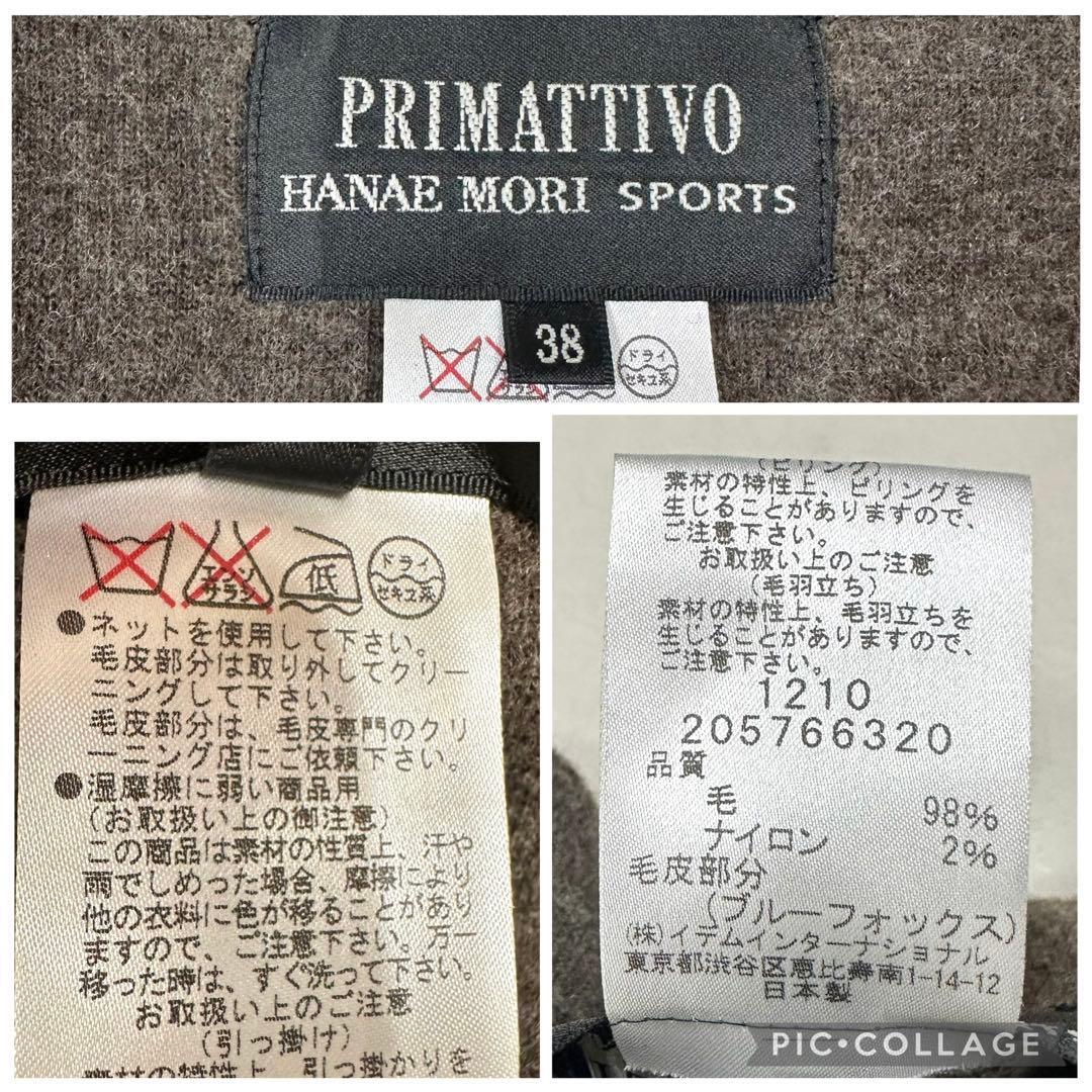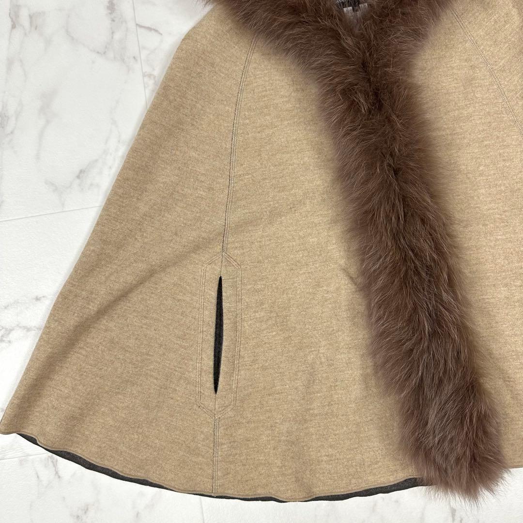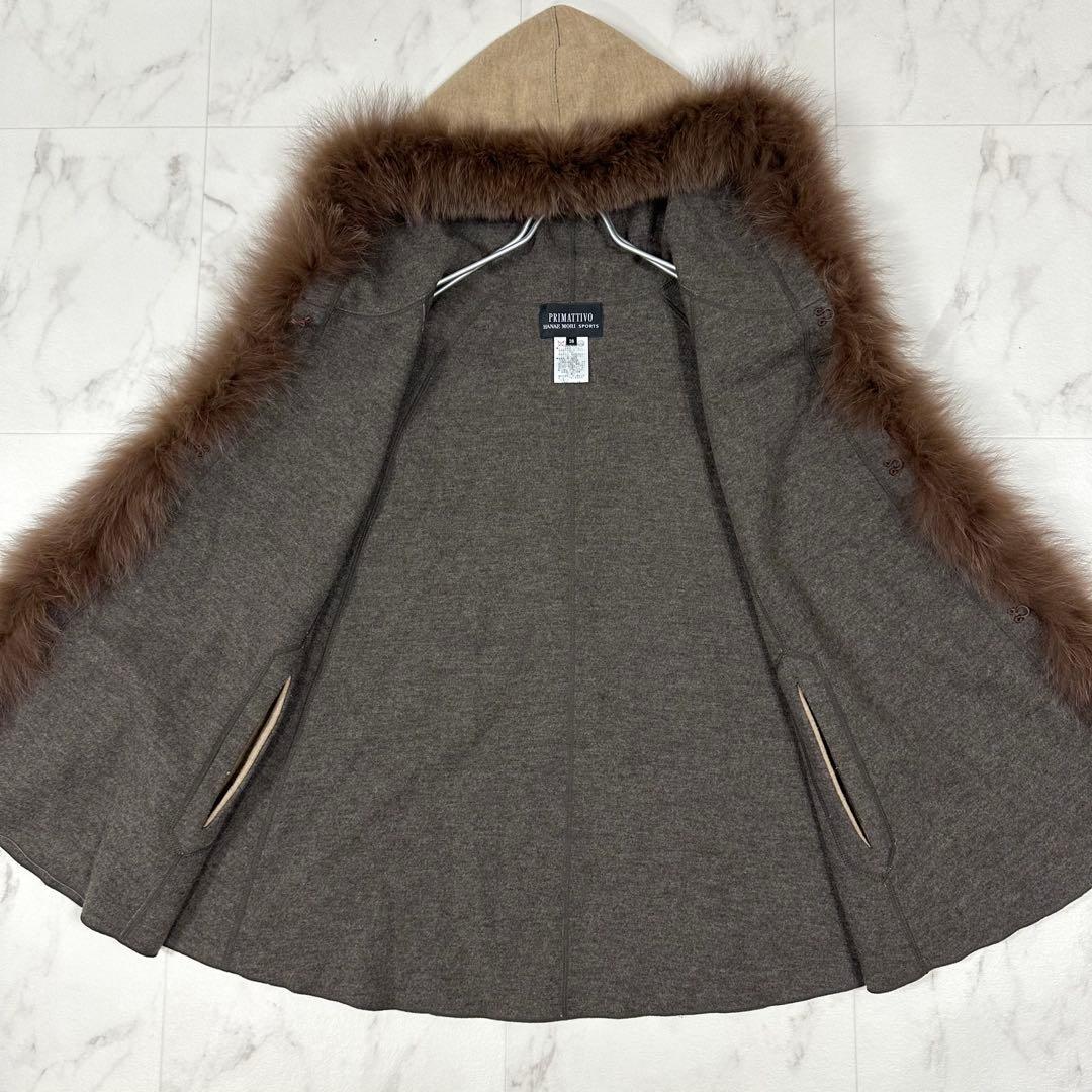 【美品】PRIMATTIVO Hanae Mori Sports ハナエモリスポーツ フード付き ウールポンチョコート フォックスファー取り外し可能 38(M相当)