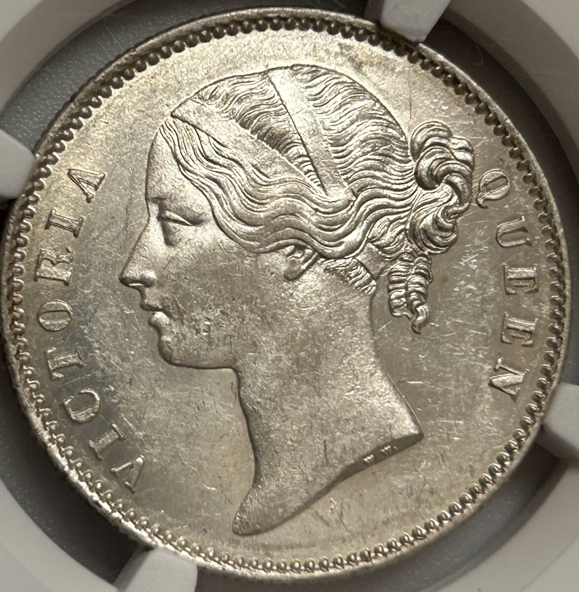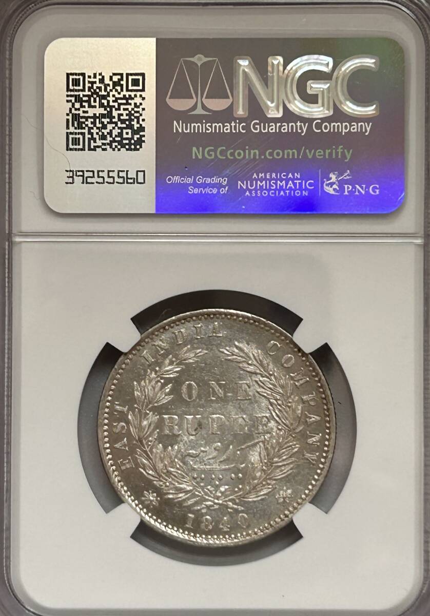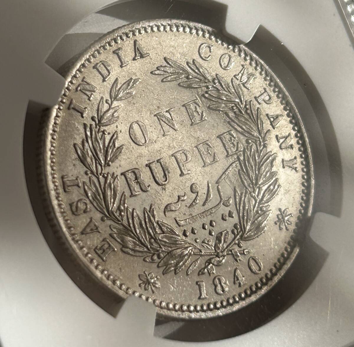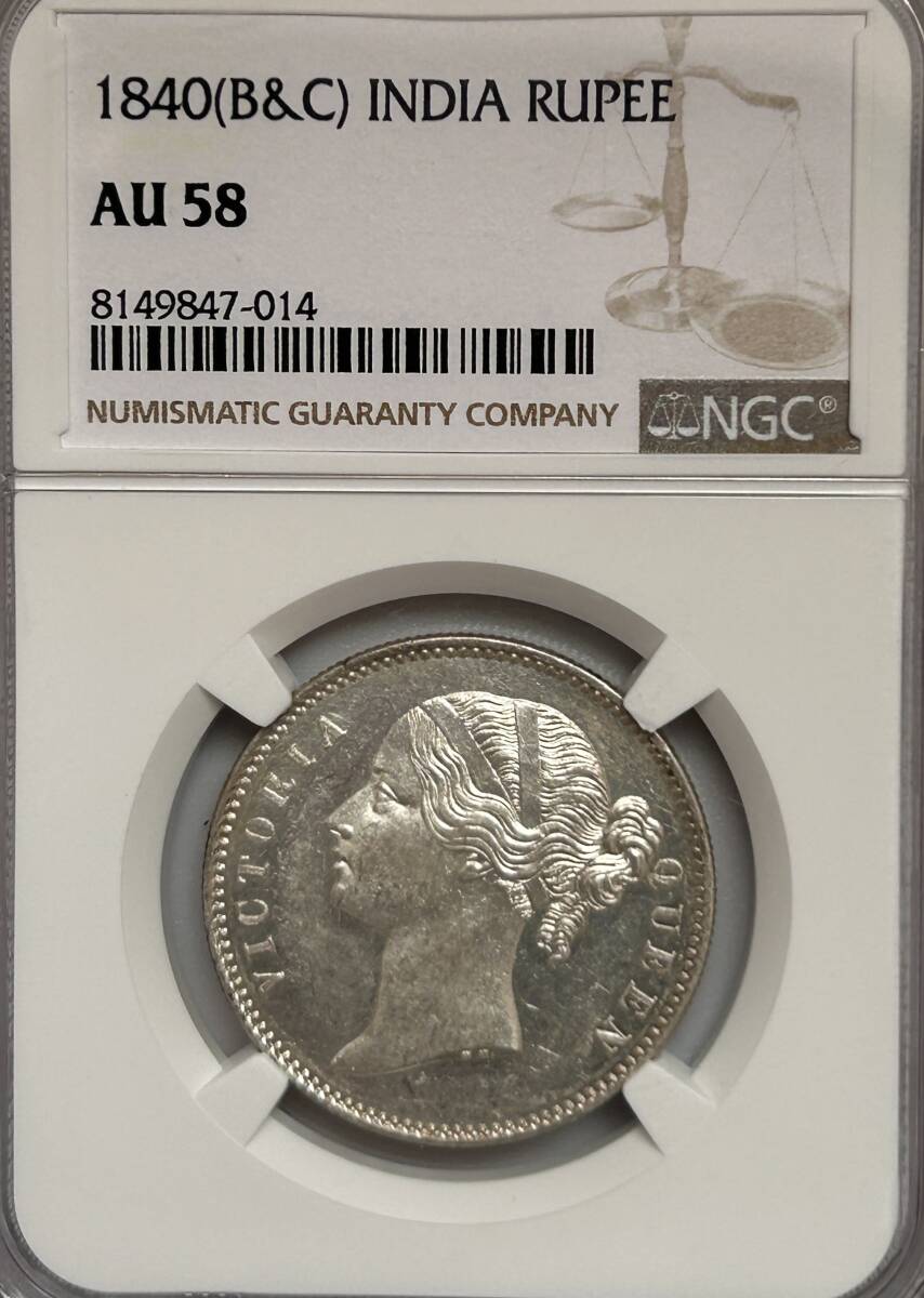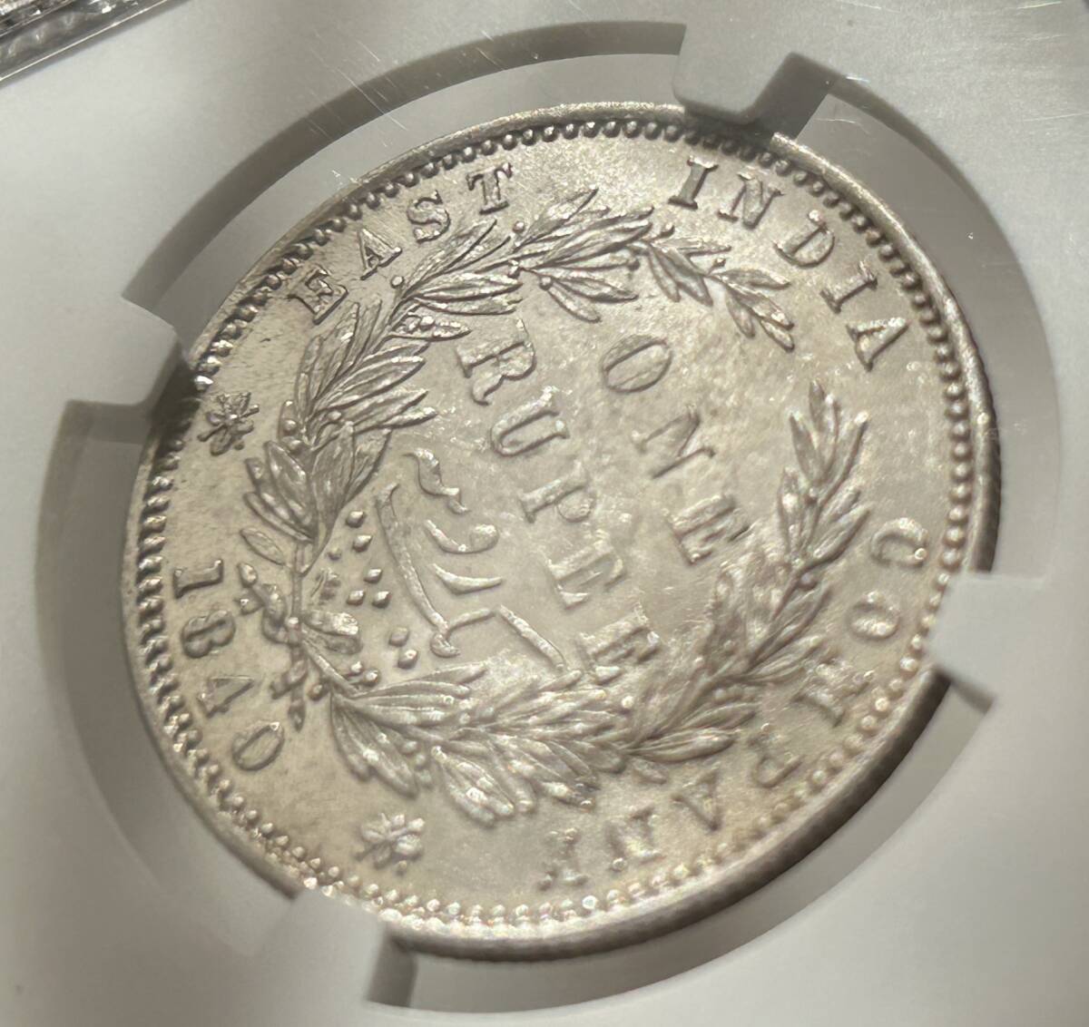 【1円スタート】1840 英領 インド 1ルピー銀貨 AU58 ヴィクトリア ヤングヘッド NGC W ワイオン 美品