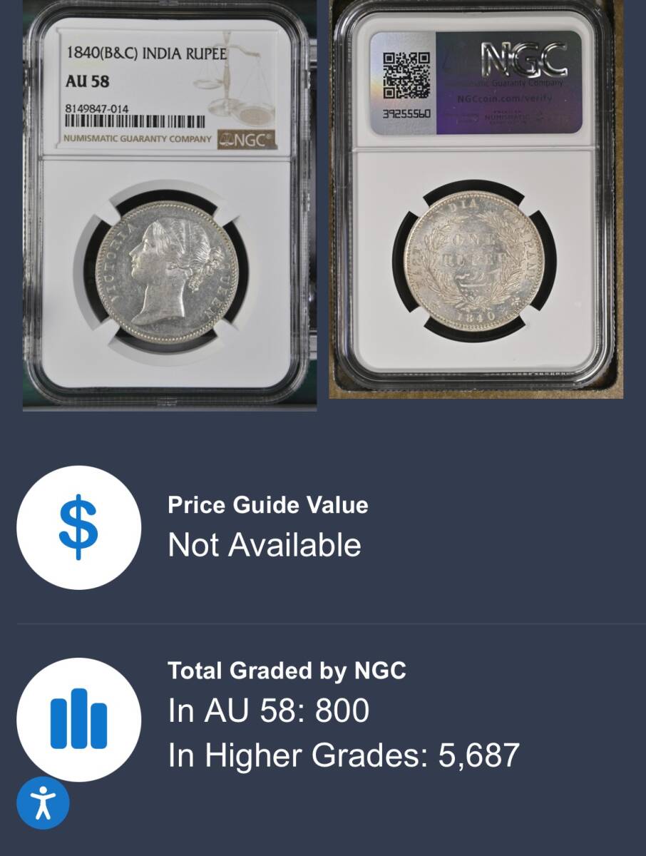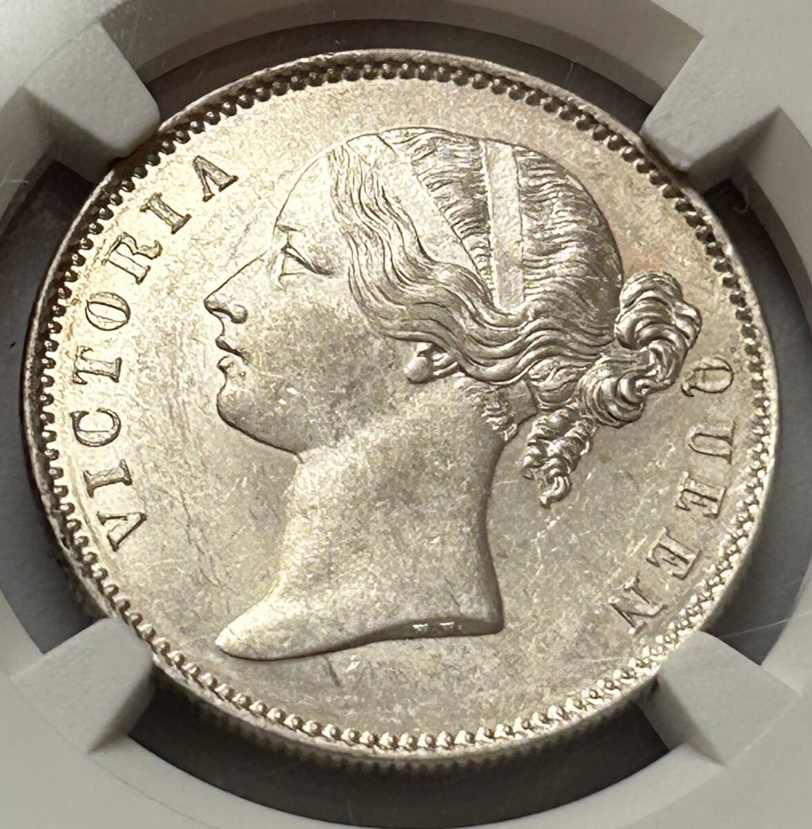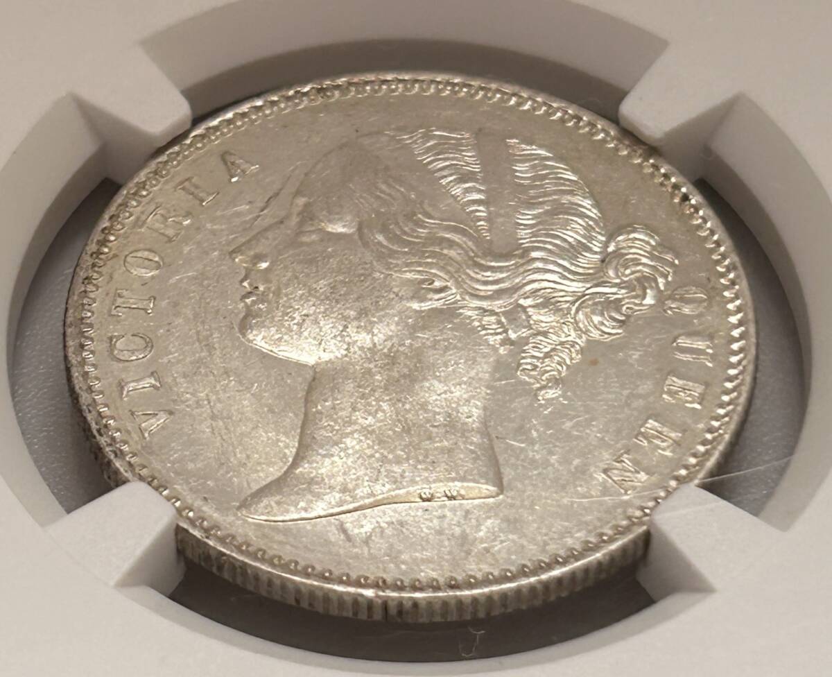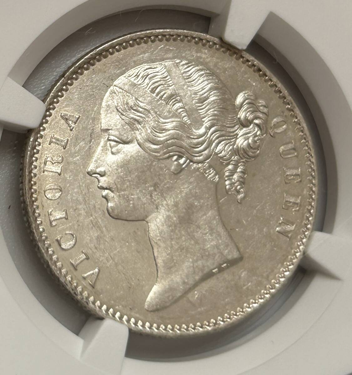 【1円スタート】1840 英領 インド 1ルピー銀貨 AU58 ヴィクトリア ヤングヘッド NGC W ワイオン 美品