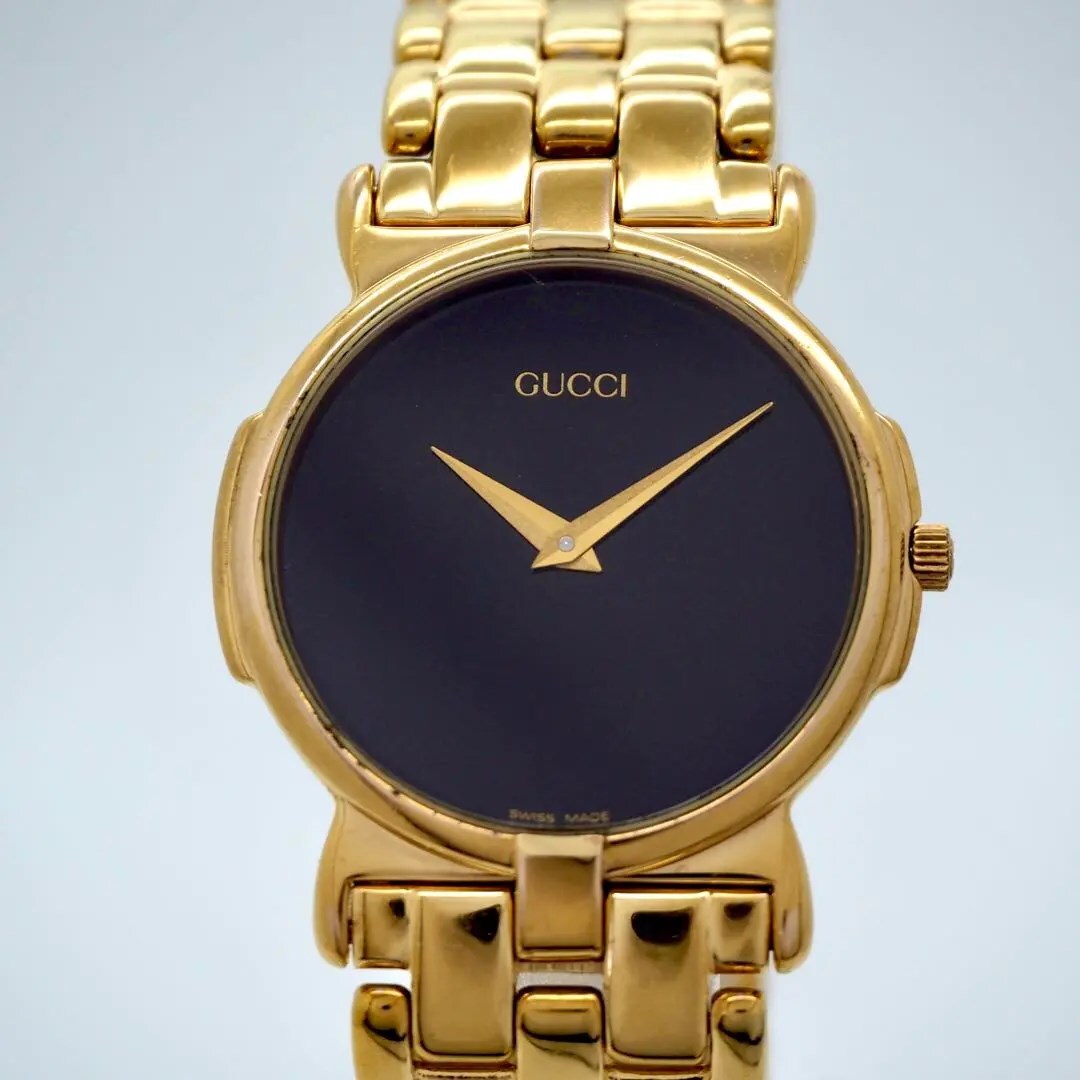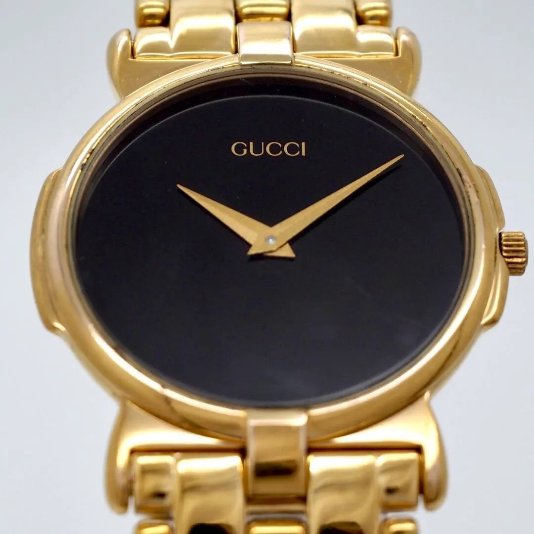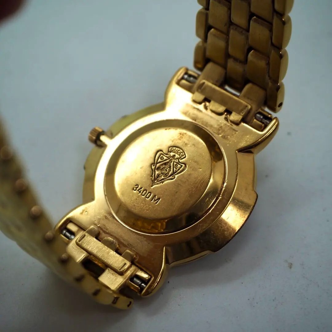 307 GUCCI メンズ 時計 3400M ゴールド ブラック 純正バンド