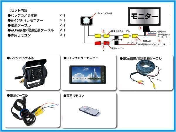 ヤンマー農作業車★9インチミラーモニター&12/24V 高画質 後方確認カメラ 農作業車に最適 車載モニター 車載カメラ リアカメラ 18ヶ月保証