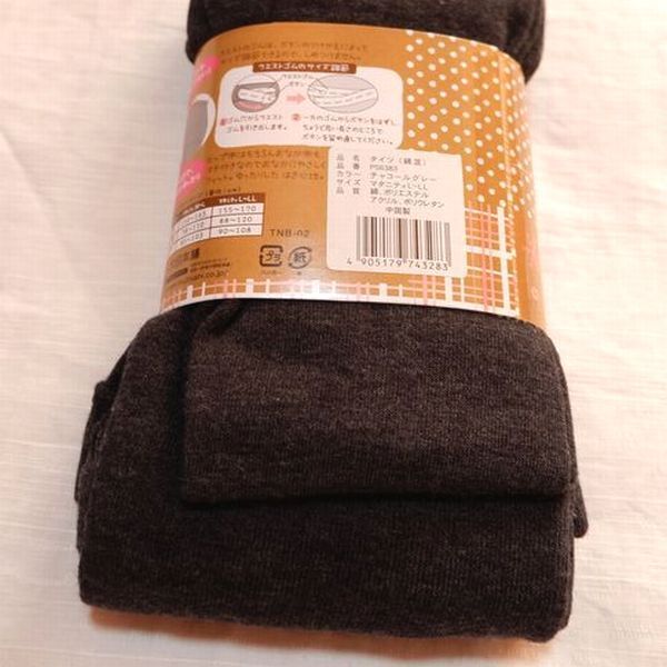 送料無料 犬印 L/LL マタニティ マチ付 綿混あったかタイツ 冷予防 チャコールグレー