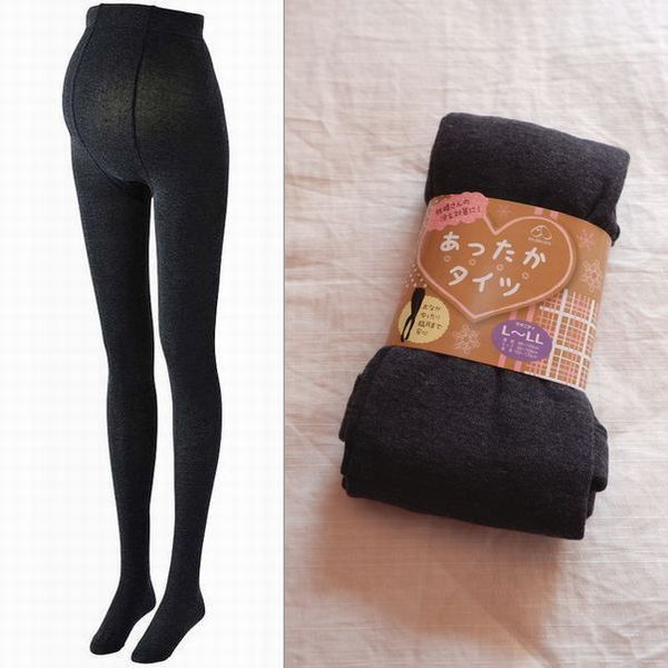 犬印本舗の、前後マチ付きで臨月までおなかにふんわりフィットするマタニティタイツで、カラーは合わせやすいチャコールグレーです。