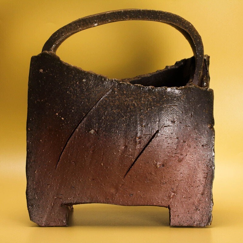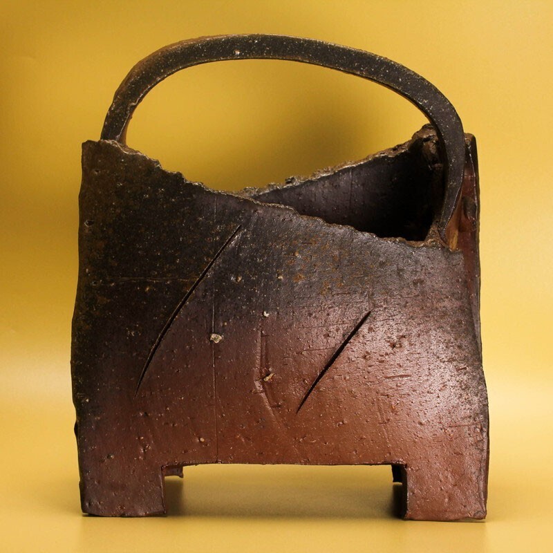 金重晃介 備前手付四方花器 共箱 共布 栞 本物保証