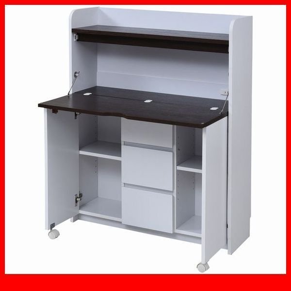 | 折り畳み式天板は使いたいときだけ広げて使わない時は畳んですっきり、ライティングデスクです。 薄型で省スペースなのでリビングに最適です。 お子様の「リビング学習」から、ママやパパのパソコンデスクとしてもOK。 上部にはランドセルなどを置けるオープン収納部、下部には扉収納部と3段の引出しで、収納力にも自信あり。 コンセント、配線コード穴もあるので、PC、周辺機器の設置もOKです。 |