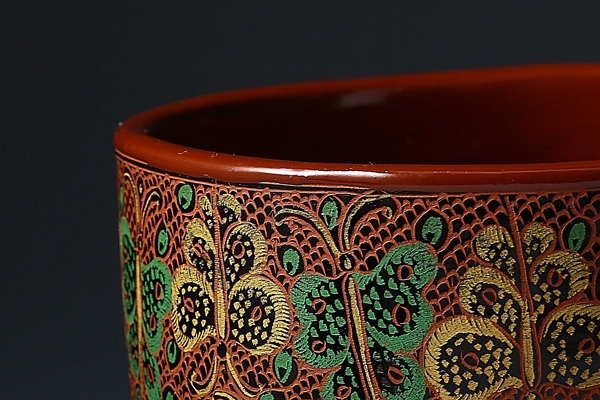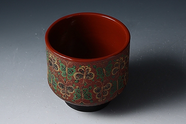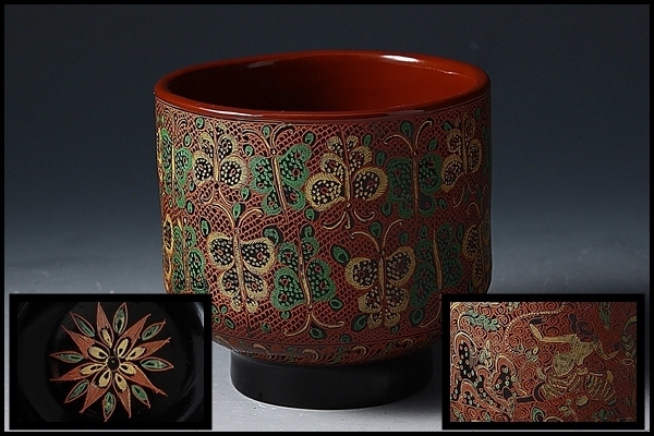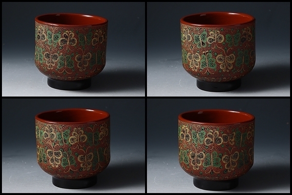 SP1078 蒟醤 キンマ 細密 茶椀 筒茶椀 漆器 茶器