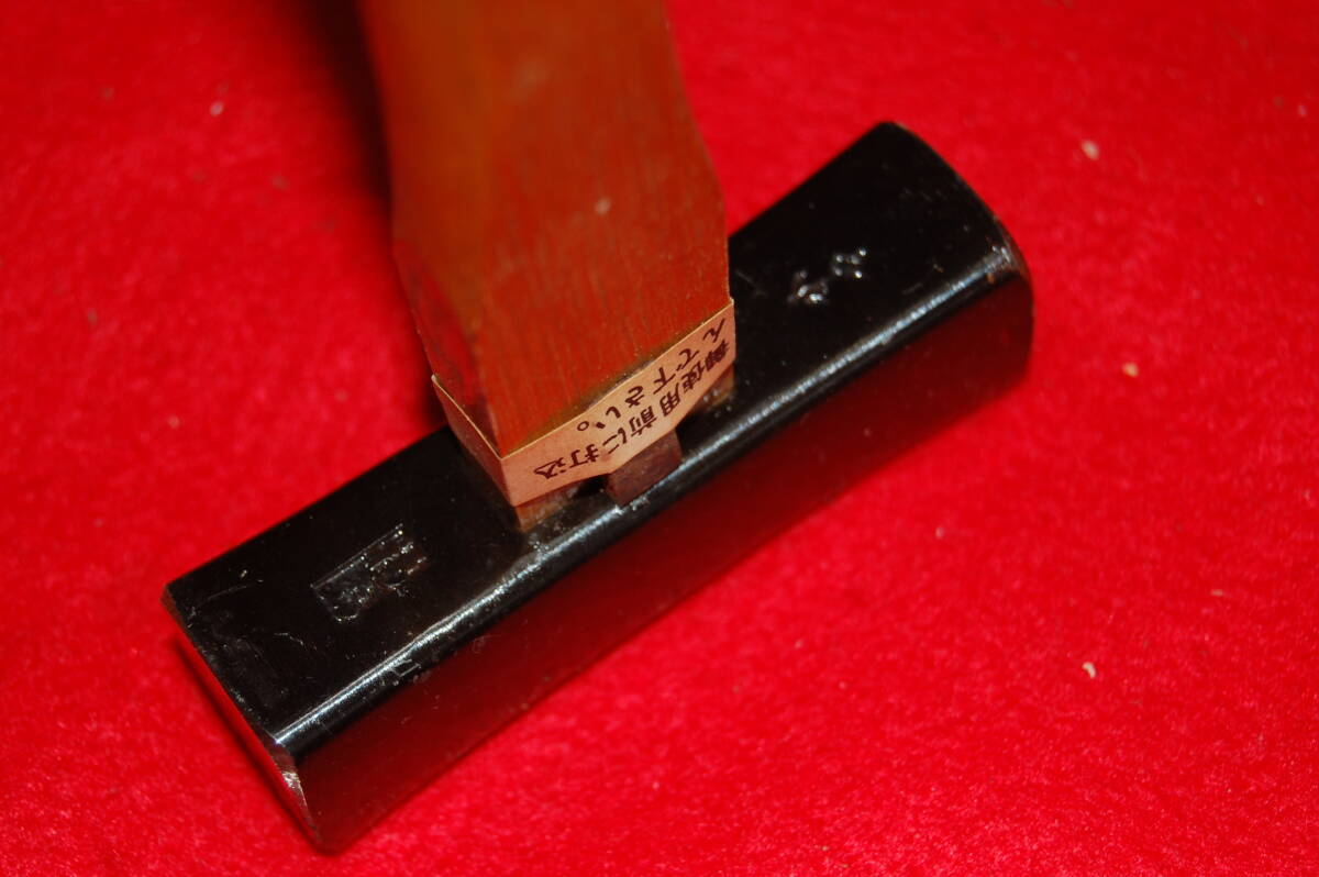 頭部裏側に福島とサイズ少々の刻印が刻んであります。また、くさびが別に付いていますので ご必要の方はご使用ください。