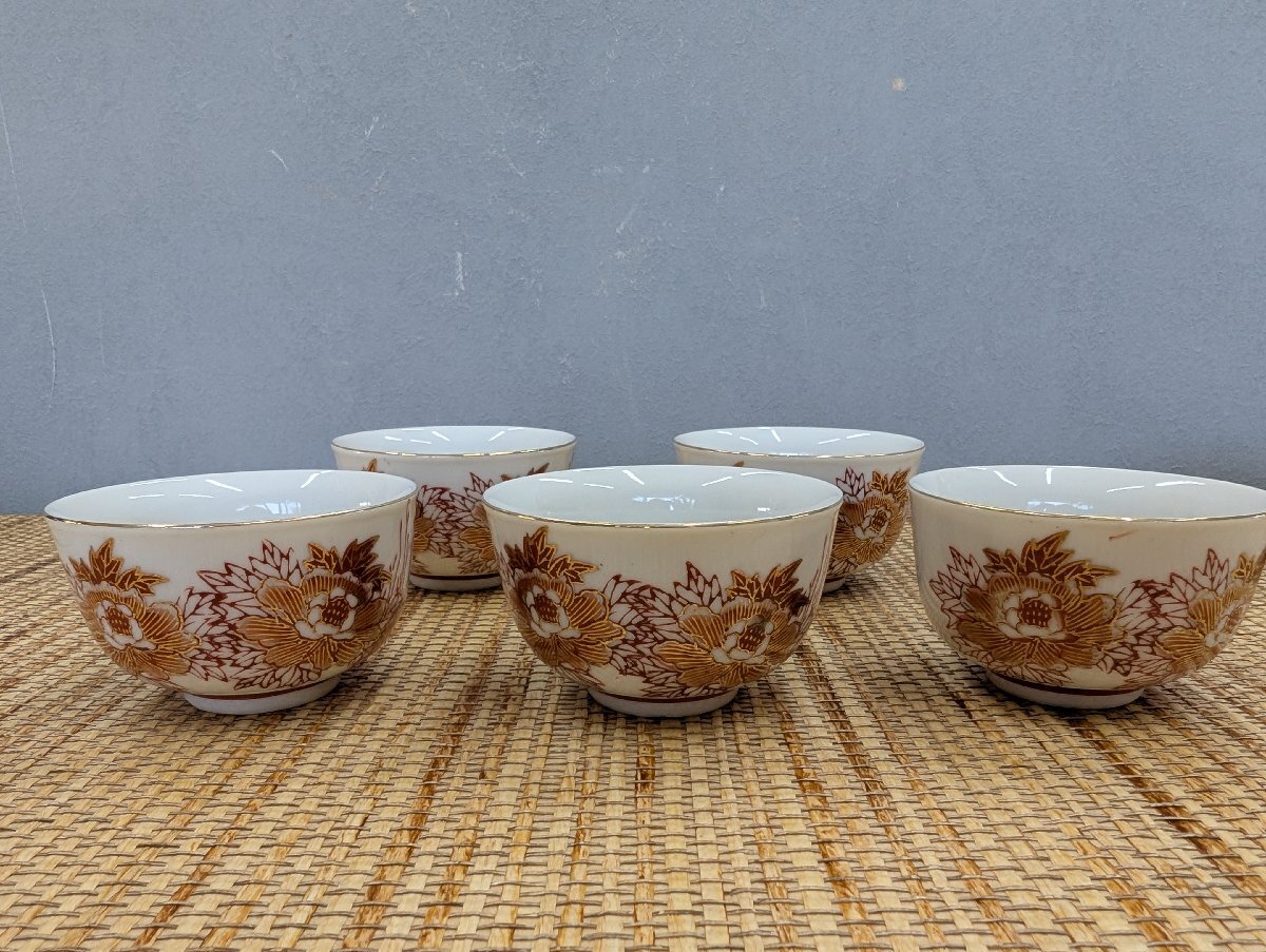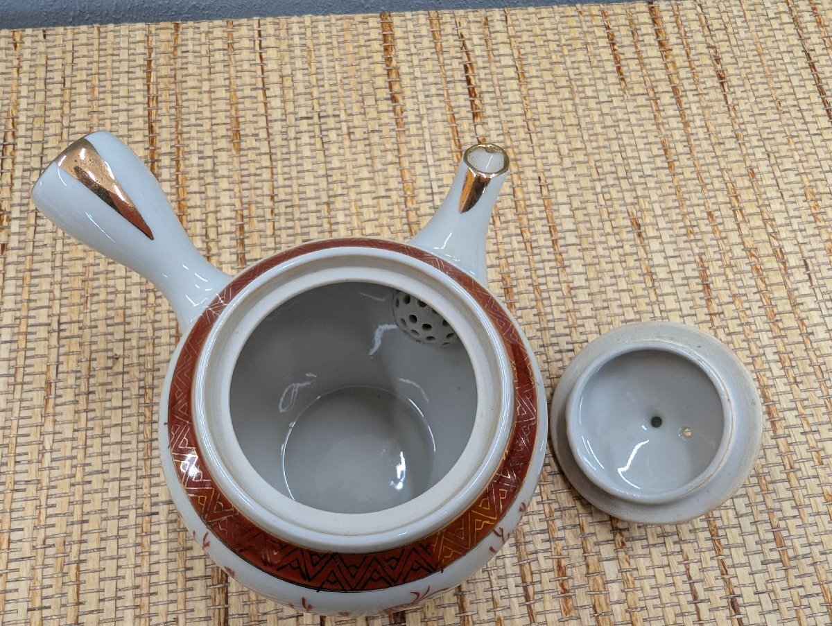 九谷焼 赤絵 茶器揃 金彩 美泉 赤牡丹 クジャク 孔雀 茶器セット