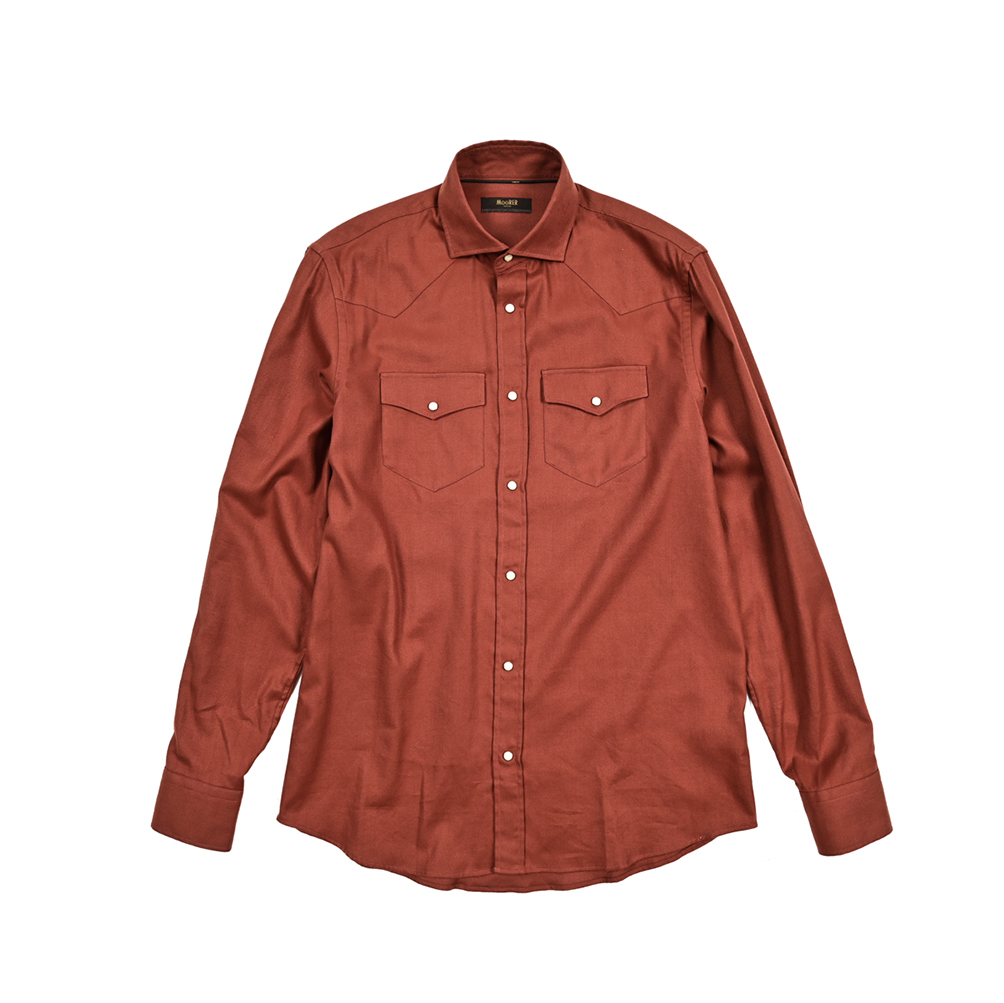 | ムーレー MOORER GARRET-AP ウエスタンシャツ セミワイドカラー 長袖 メンズ コットン リヨセル テラコッタ MADE IN ITALY | |