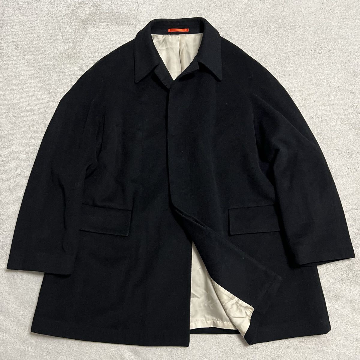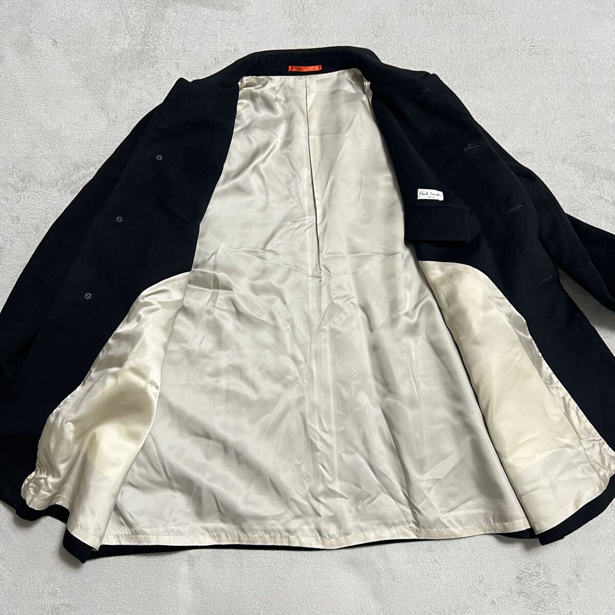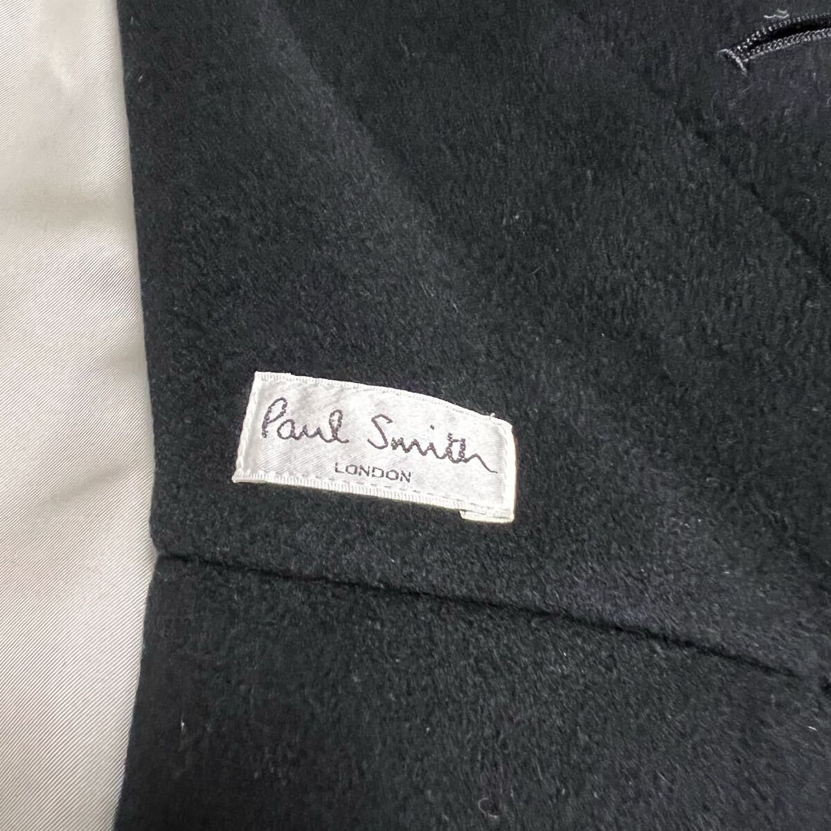 ★カシミア混★最高級 Paul Smith ポールスミス カシミヤ ステンカラーコート 比翼ボタン 黒 ブラック メンズ サイズM ウール 美品 R-8293