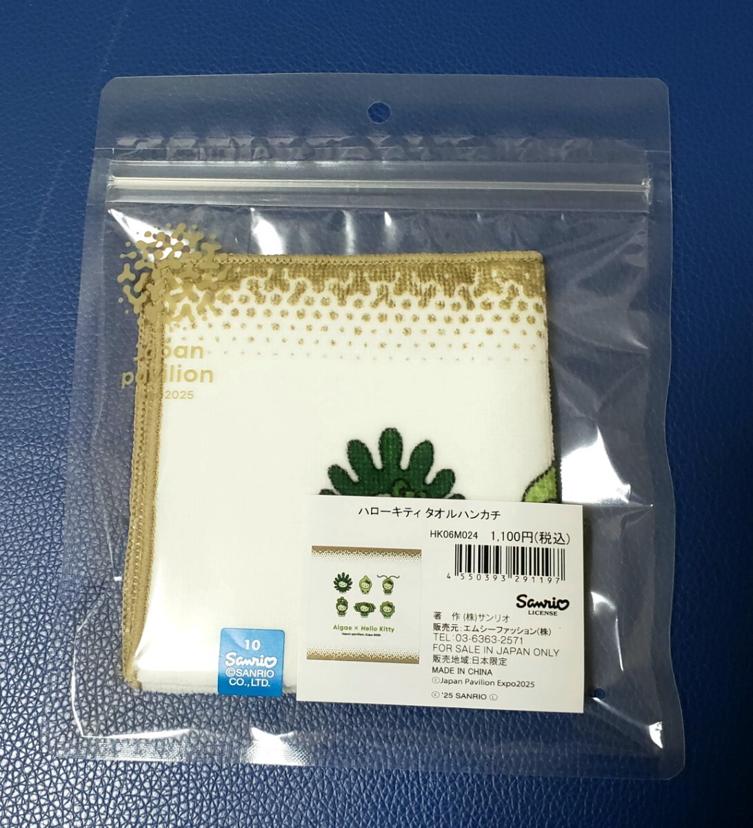 大阪関西万博の日本館ショップ限定のハローキティタオルハンカチです。