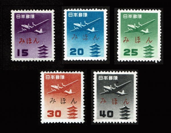 みほん字入り 航空切手 五重塔航空(円位) 5種完 糊落ち