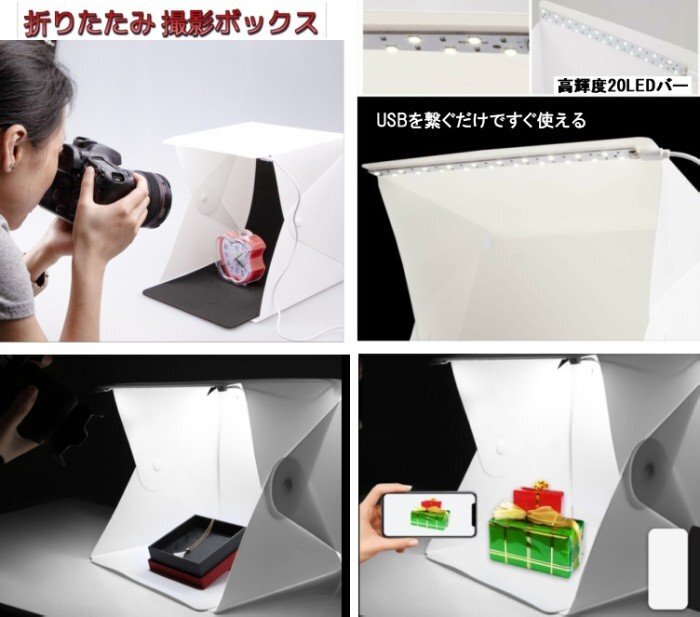 | LEDライト搭載 折りたたみ式 小型 撮影ボックス |