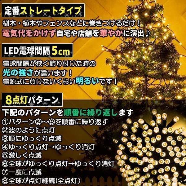 ソーラーイルミネーション屋外クリスマスストレート屋外用イルミネーションライトソーラーライト200球