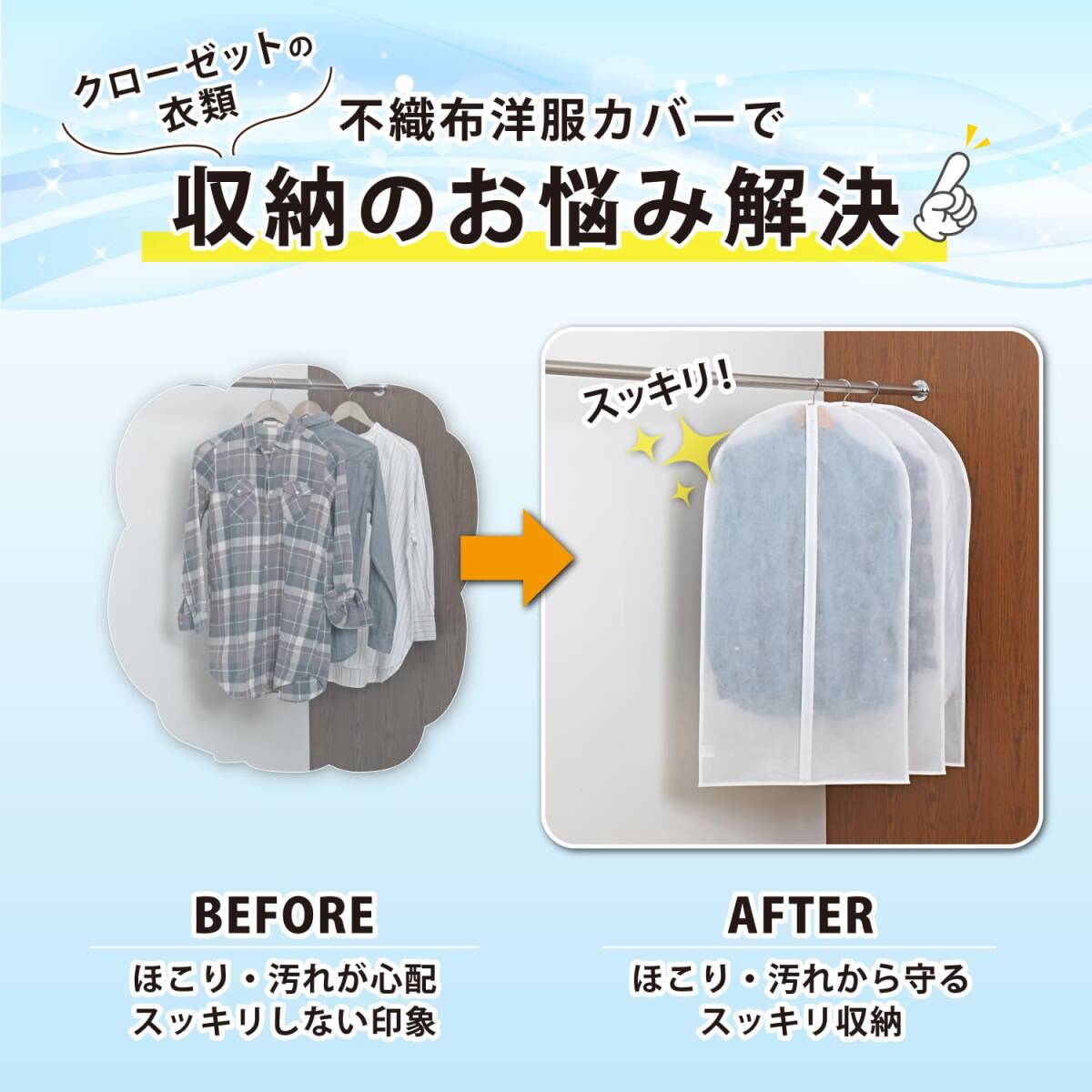・【クローゼット内スッキリ】:オフシーズンの大切な衣類を1枚ずつしっかり守れるカバー。