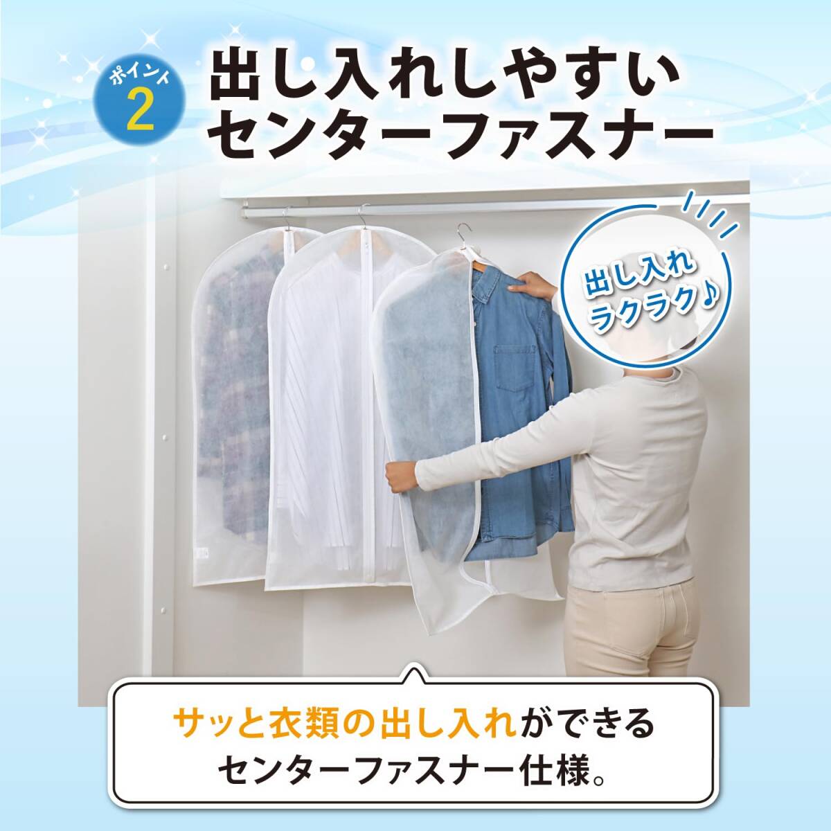 ・【ホコリなどの汚れから守る】:大切な衣類をホコリなどの汚れからガード。底閉じタイプなので下から舞い上がるホコリやダニもしっかりシャットアウト。