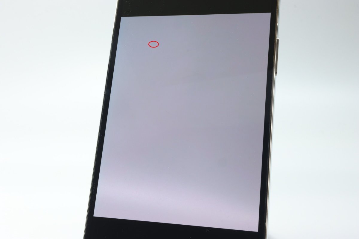・アウトカメラ撮影時、灰色の丸影が写り込みます(写真6)