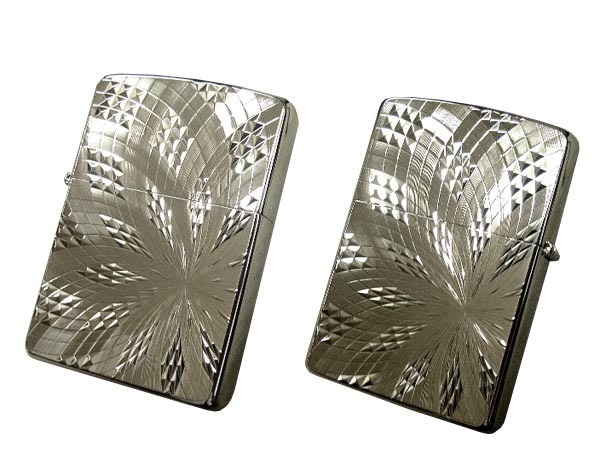 送料180円~新品正規品 プラチナ仕上 花乱柄ダイヤモンドカット(より輝く特殊技法)両面柄ZIPPOジッポ オイルライター真鍮製 フリント式