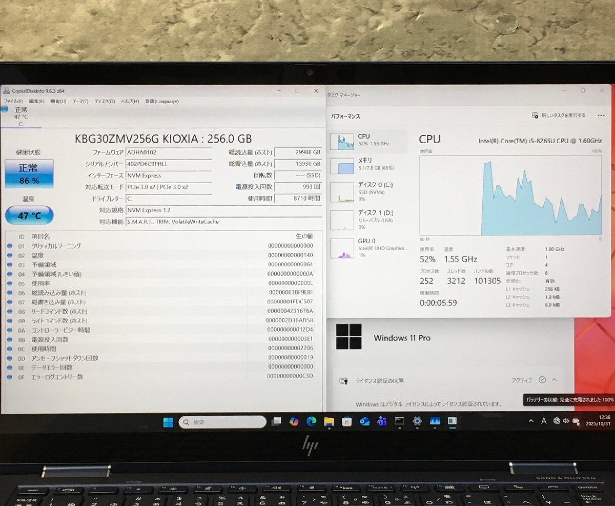 | ライセンス確認 | 〇 | CrystalDiskinfo | 〇 |