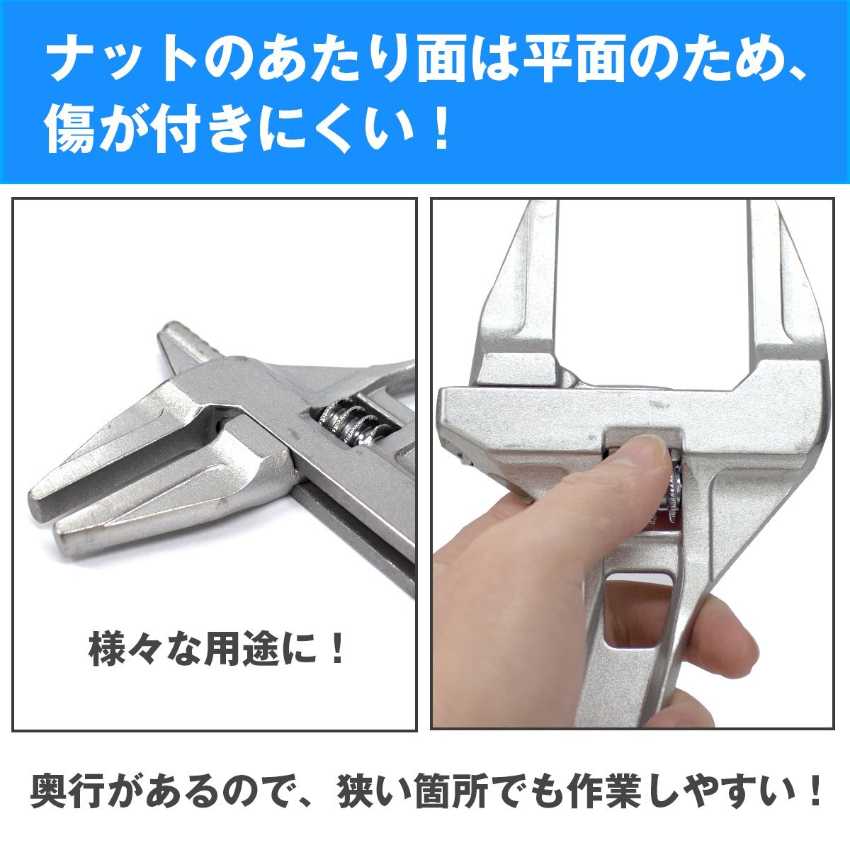 モーターレンチ ワイド モンキーレンチ 最大開口72mm アルミ製 たて型 配管 空調配管 加工 工具 レンチ 水道工事 水道管 DIY