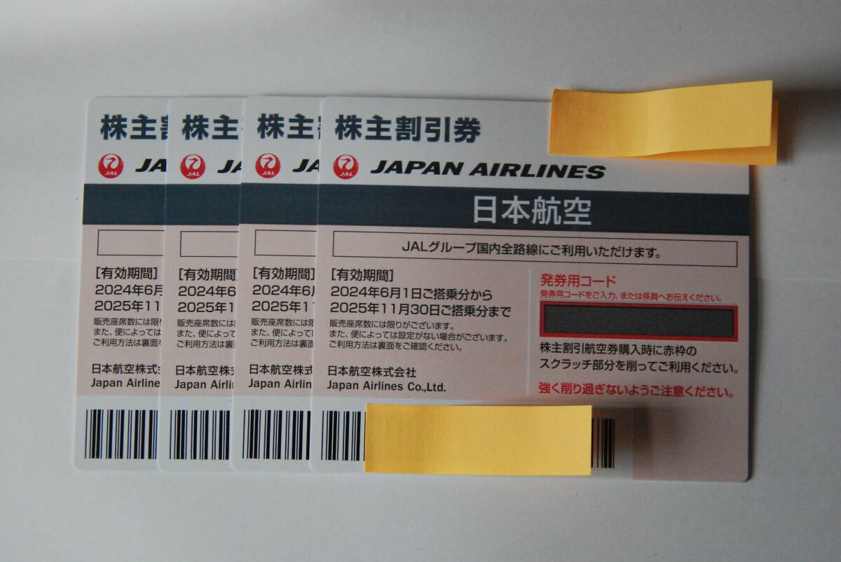 JAL 日本航空 株主割引券4枚セット 有効期間2025年11月30日