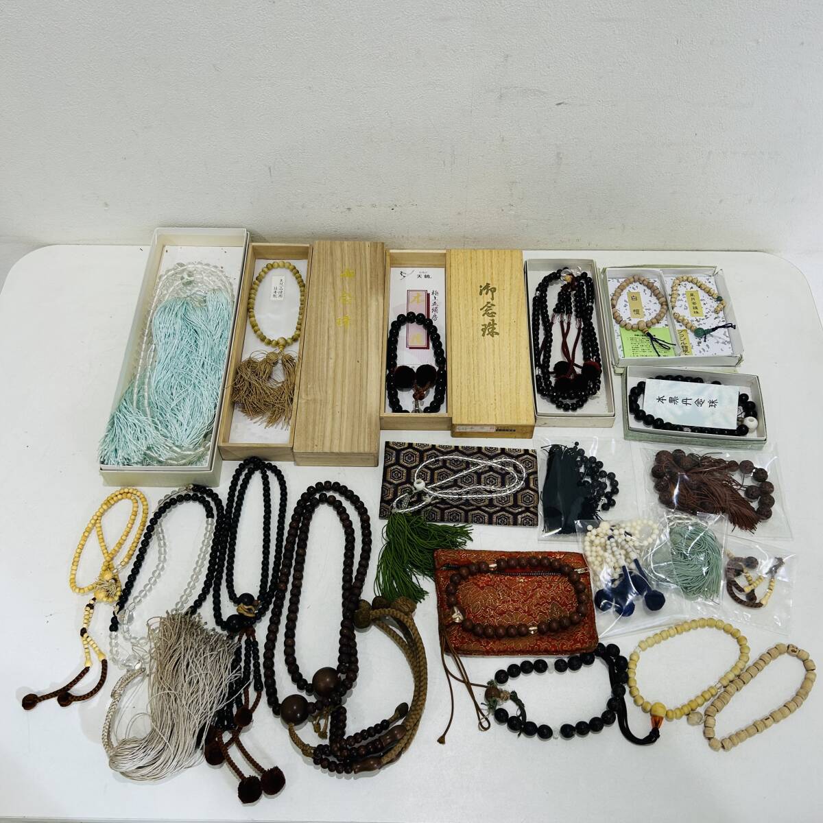 | 現状品 数珠 まとめて 天然石 本黒檀 二連 本式数珠 星月菩提珠 略式数珠 腕輪念珠 数珠入数珠入 男性用 女性用 木箱 仏具 法具 NC2468 検i |