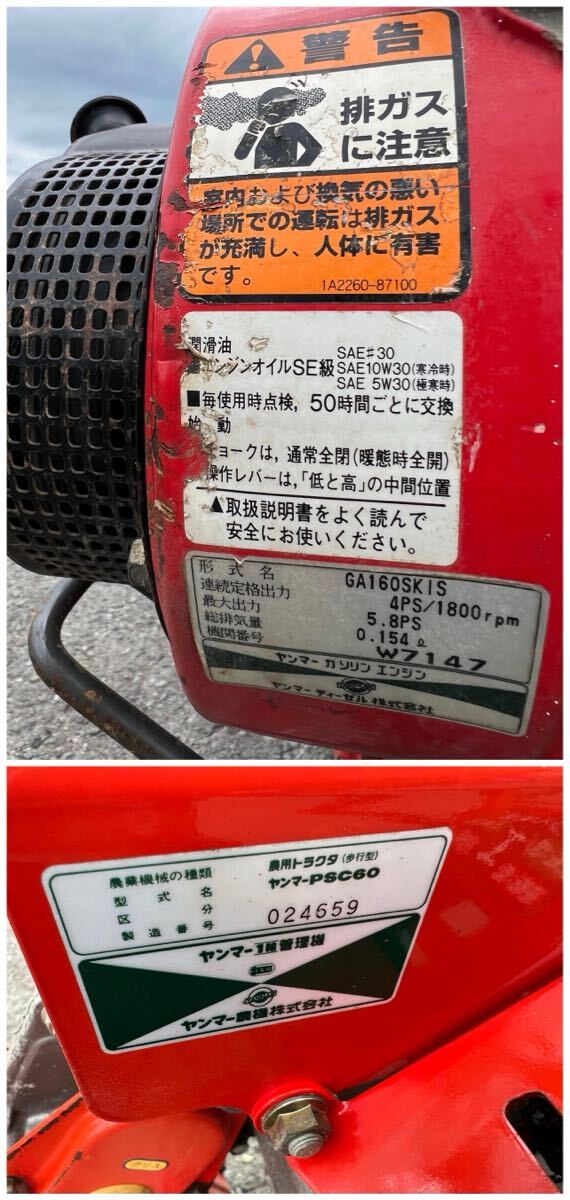 即決【9】★農用トラクター ヤンマー ふらみんご PSC60 GA160SKIS GA160 最大5.8馬力 排土板付き 一輪管理機 耕運機 耕うん機