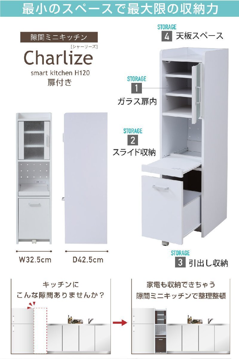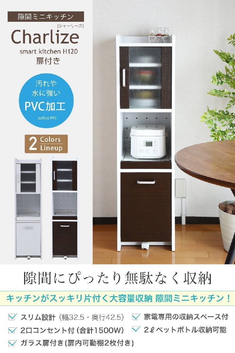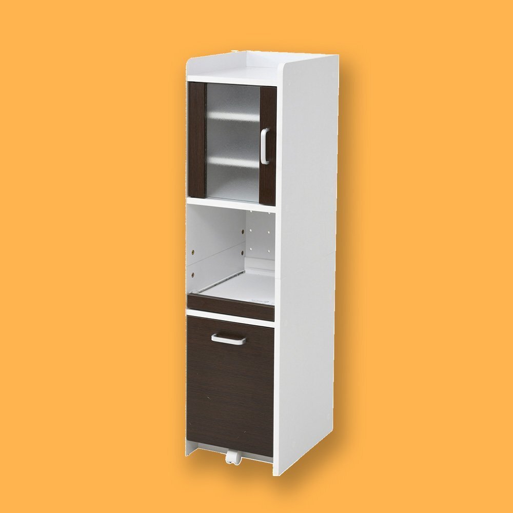 | ■商品説明 隙間タイプでスリム設計のキッチン収納。高さ違い3タイプのシリーズ。高さ120扉タイプは、一人暮らしサイズの冷蔵庫横にぴったりサイズ。リビングで収納する事になっても邪魔にならないシンプル・コンパクトデザインです。小さいながらも、家電収納可能なスライドテーブルと、食器類の収納に適した扉収納があるコンパクトオールインワン。ペットボトルも収納可能な深めの引出しもあります。 |