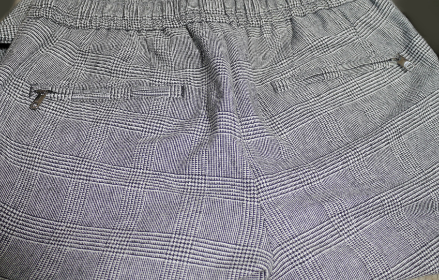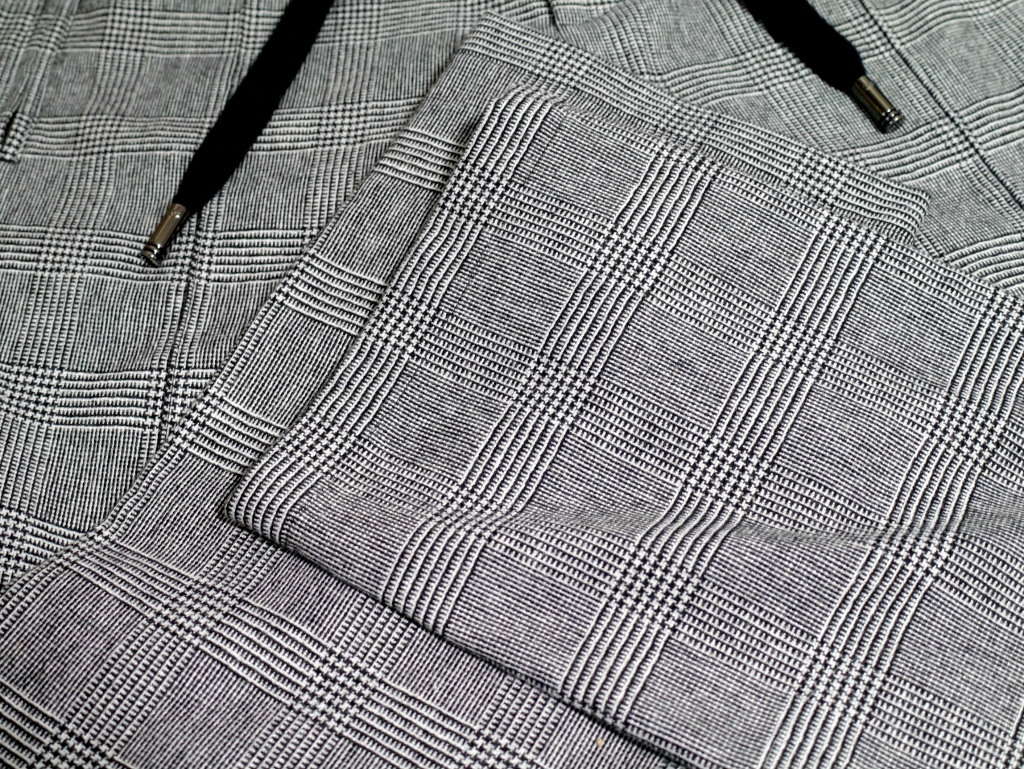 ジョガーパンツ特有のテーパードがかった綺麗なシルエットで、カジュアルにもシックにも合わせやすいモノトーンのチェック柄は着回しにも重宝します。
