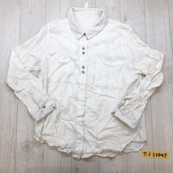 JEANASIS ジーナシス レディース ライトストーン付き ダブルポケット 長袖シャツ F オフホワイト です。