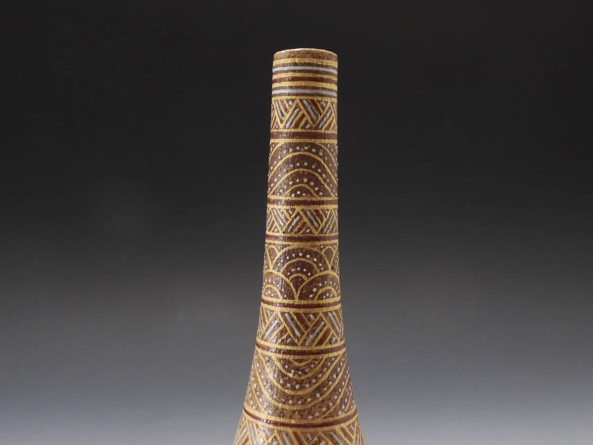 | ○梗○平安 文華 造 伊羅保彩色文 一輪生 花入 20.6㎝ 共箱 無傷 未使用 E100◇ |