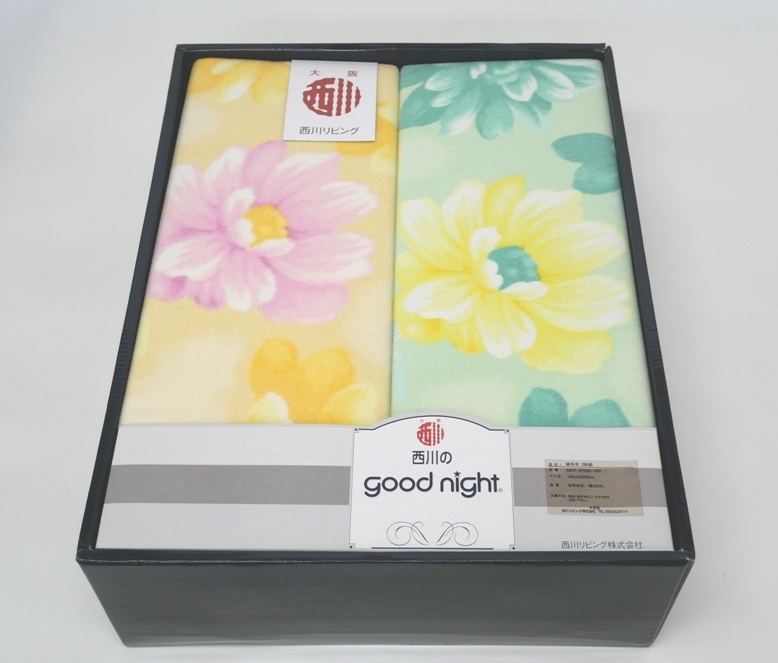 【寝具用品】 綿毛布2枚組 西川リビング シングルサイズ140×200cm good night 花柄 保温 暖かい 敷布用 綿100% 贈答品店より |