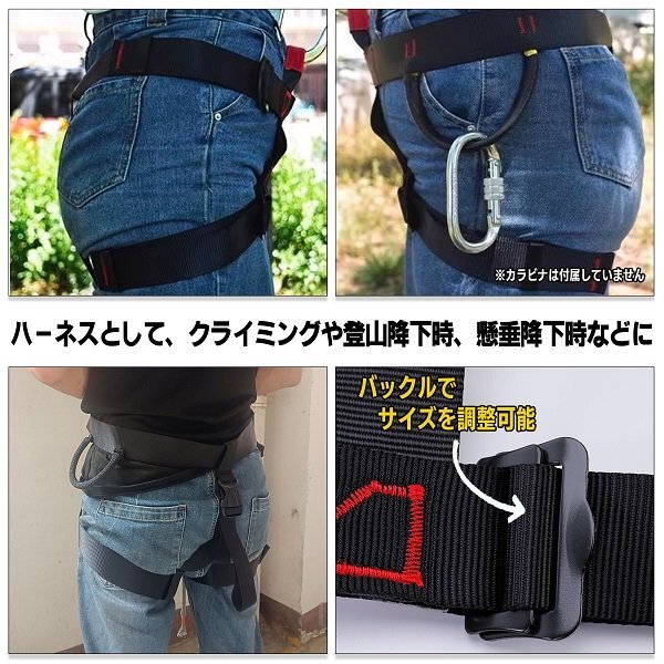 ハーネスとして、クライミングや登山降下時、懸垂降下時などに。