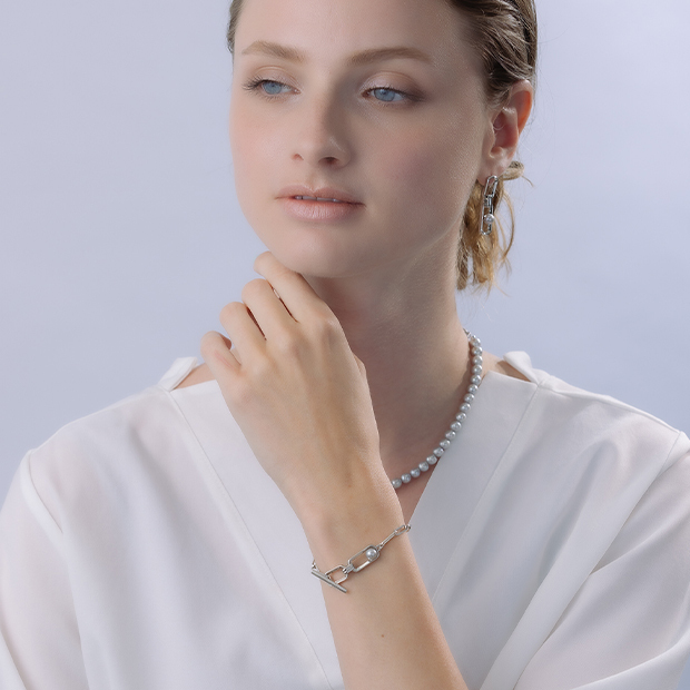 クリップチェインとパールを組わせたジェンダーレスな PEARL LINKSシリーズ。