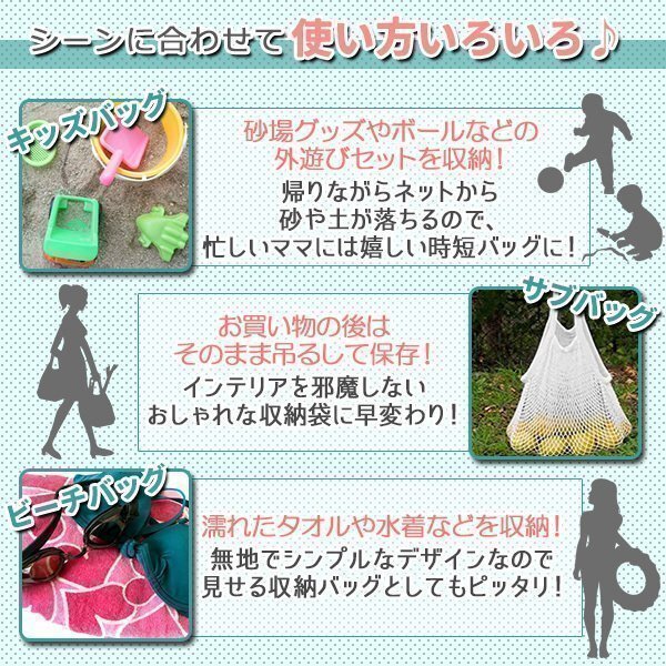 ★ メッシュバッグ ネットバッグ コットン メッシュ ホワイト 白 お砂場バッグ おもちゃ サッカーボール入れ 編みバッグ 洗えるエコバッグ