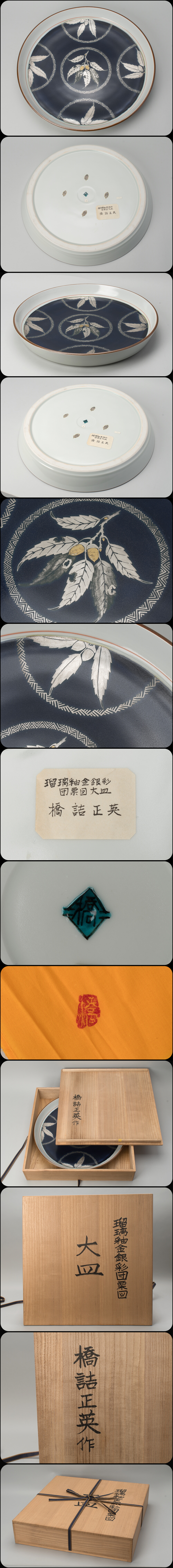 | 橋詰正英の瑠璃釉金銀彩団票図大皿。共箱有。真作保証。 サイズは、幅約50.5cm、高さ約7cm。 傷・直しありません。 状態・詳細は、画像でご確認お願いいたします。 |