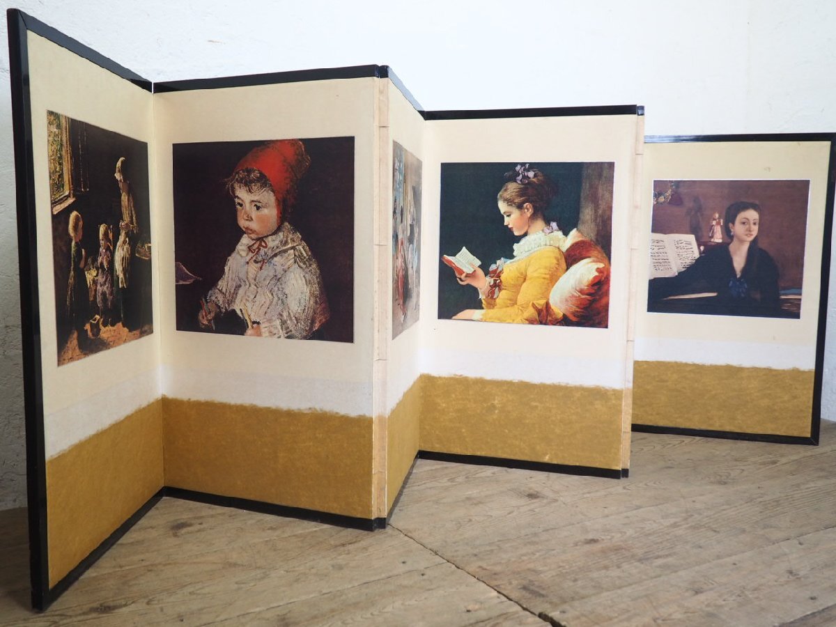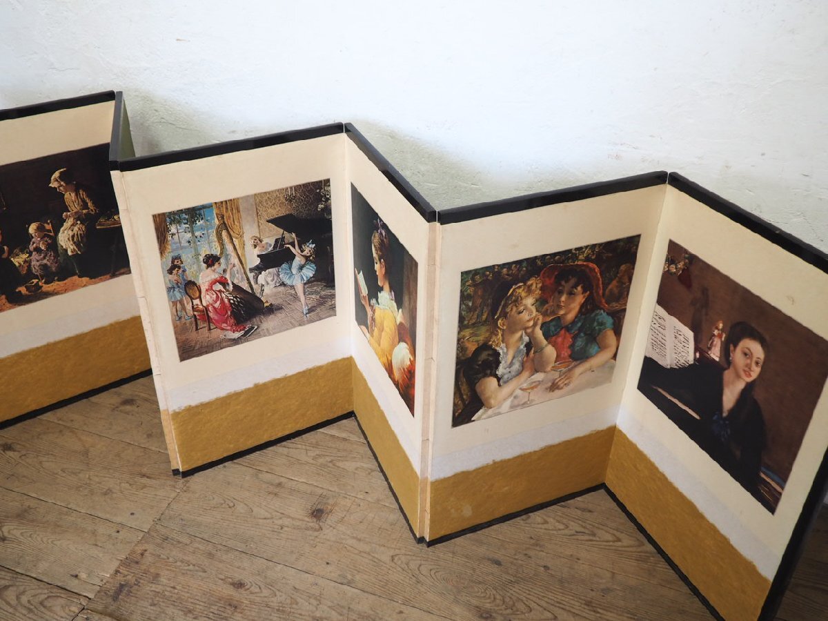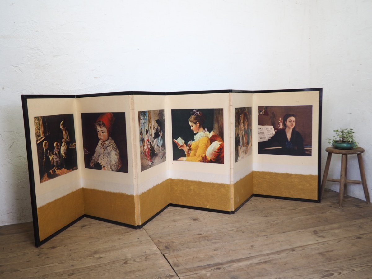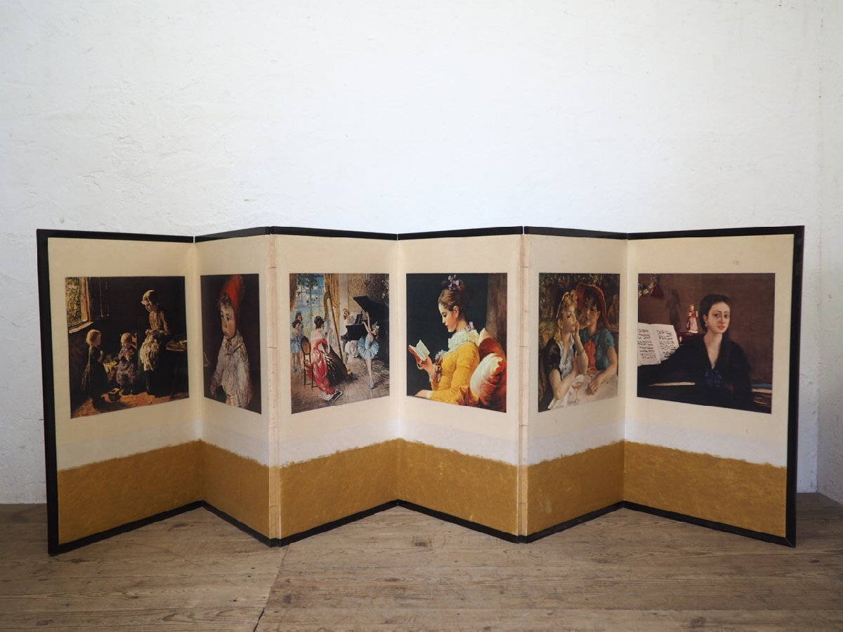 タE0682◆最大W314cm◆6連のレトロな折りたたみ式衝立◆洋館 間仕切り パーティション 屏風 絵画 美術 カフェ オブジェ インテリアI笹1