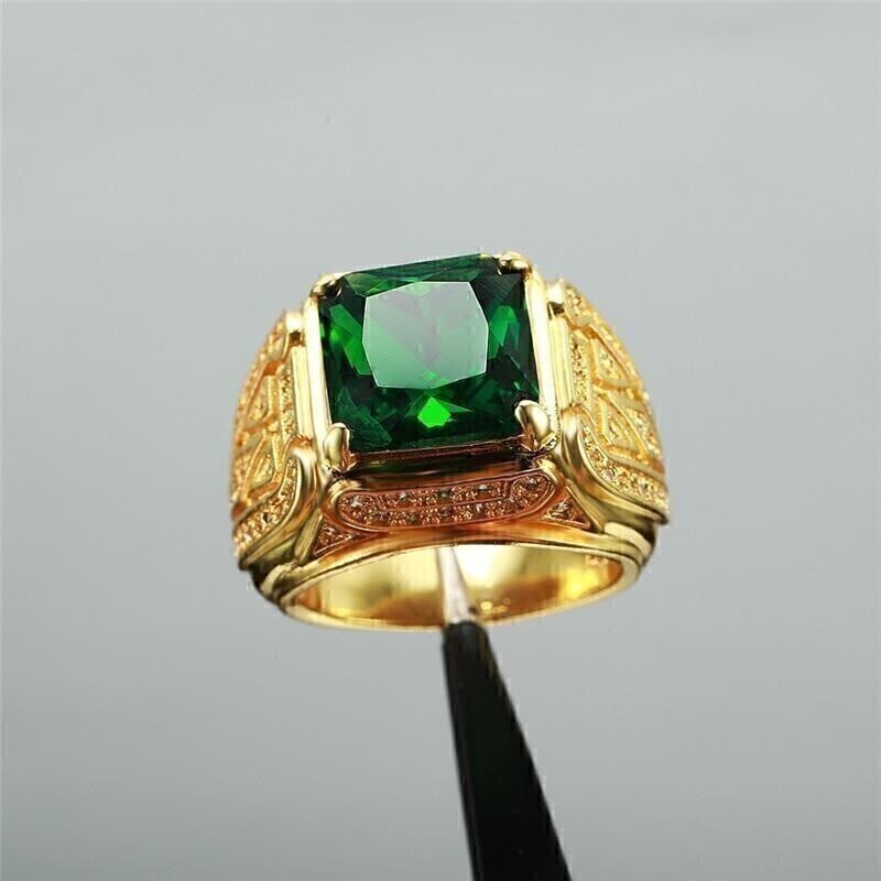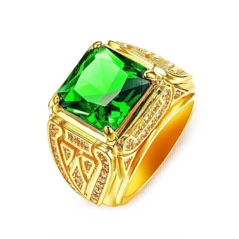 MA264:【定価68800円】1円スタート 高級 大粒 グリーンクリスタル ストーン リング ゴールド ヴィンテージ 極