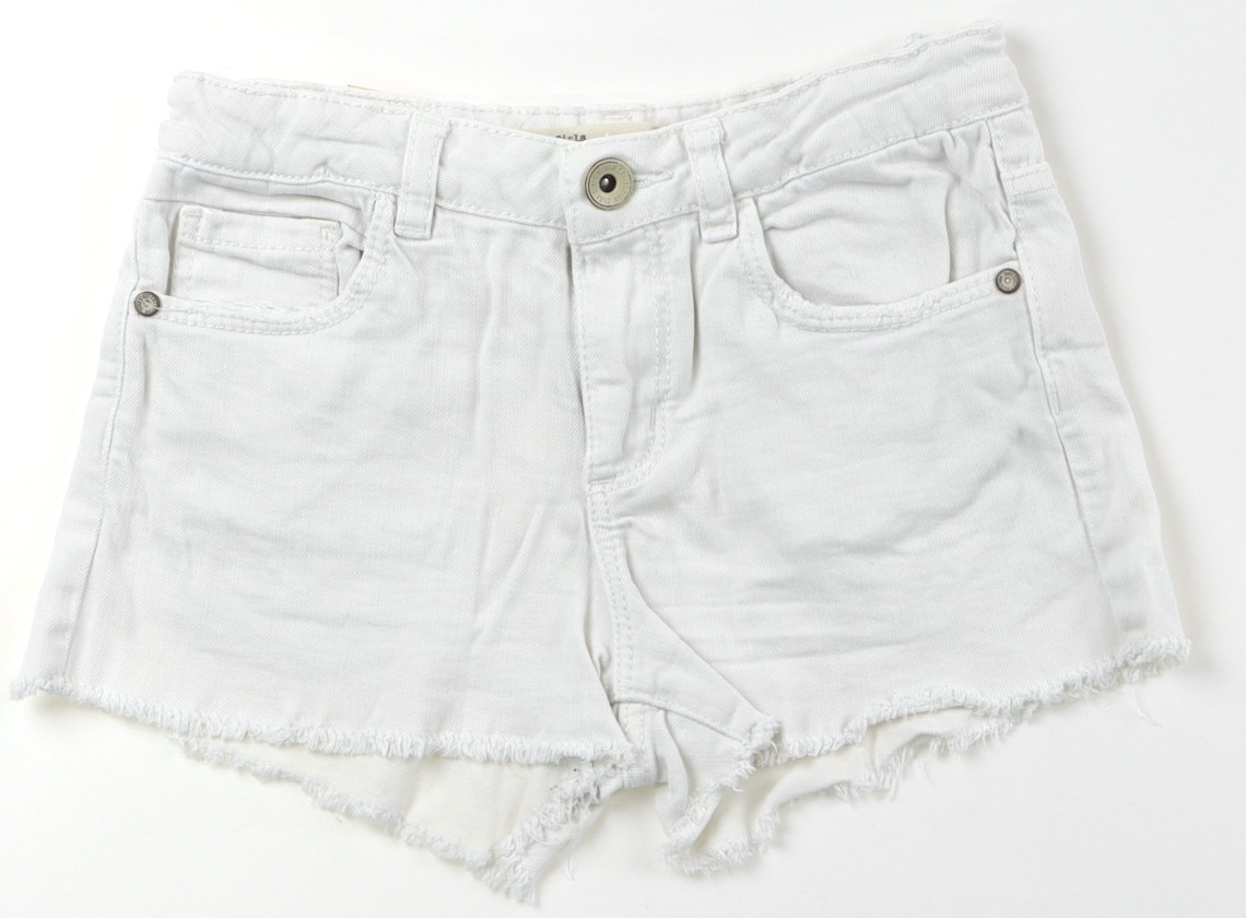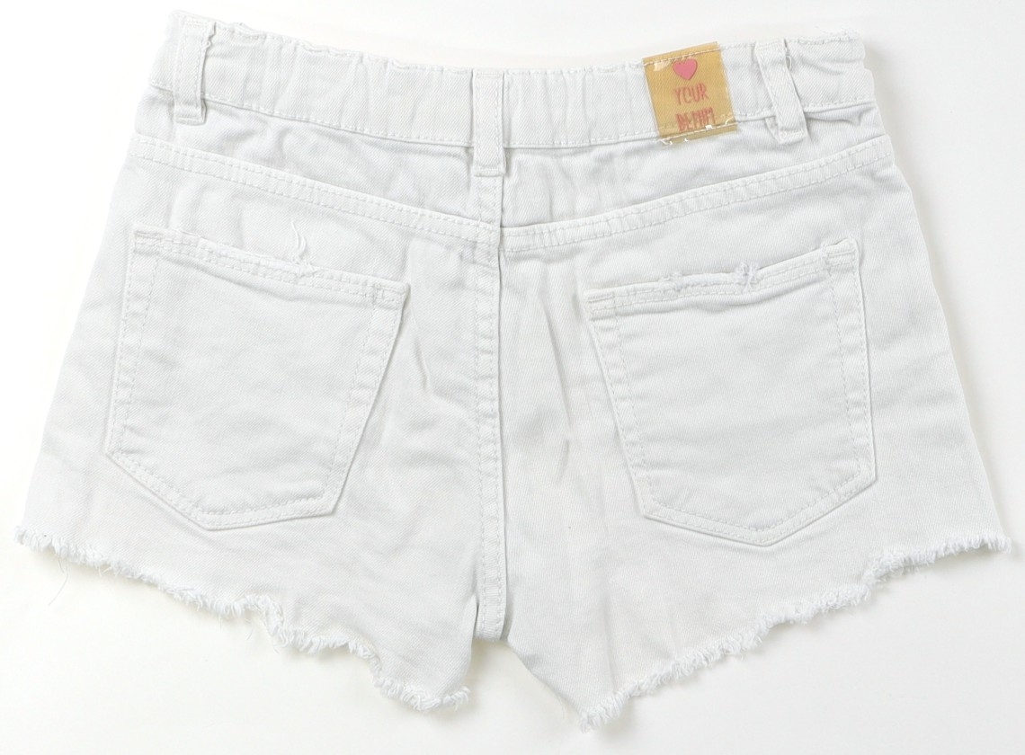 デニム。実際のサイズ表記は122cm。カットオフデザイン。サイズ調整ゴムが付いています。洗いざらし感がありますが、まだお使いいただけそうです。