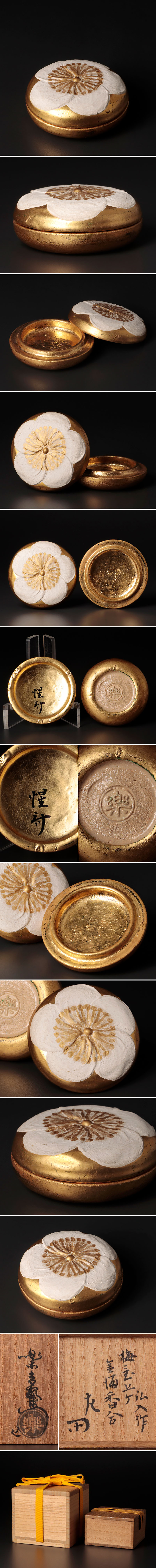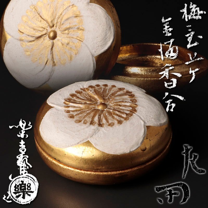 | 【古美味】十二代楽吉左衛門(弘入)造『惺斎書付』梅置上ケ 金溜香合 茶道具 保証品 |