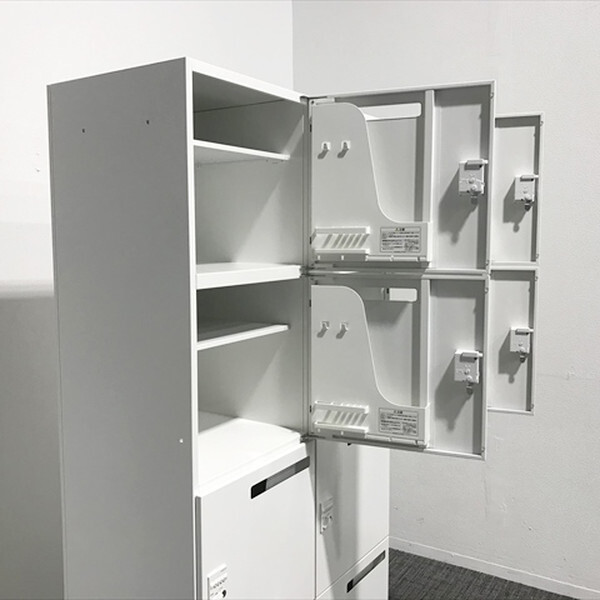 ■取り扱い番号 LM-872265B ■仕様 メーカー : コクヨ 製品名 : 8人用パーソナルロッカー 2列4段 エディア ダイヤル式 シングルベース型 BWUH-RN82XM79SAW 色素材 : ホワイト 外寸 : 幅900mm 奥行き450mm 高さ1810mm ランク : Bランク ■特徴 ※非常解錠キーは付属してません。 ※非常解錠キー作成は1本3000円(税別)、約1~2週間程かかります。別途見積になりますのでご了承ください。 庫内配線口・ベース付 棚板8枚 固定棚 扉の裏には封筒や書類などを入れられるメールボックスが付いているので、オフィスに不在がちな営業マンに最適。すぐに取り出したいものや使用頻度の高い小物の収納にも便利です。 |
