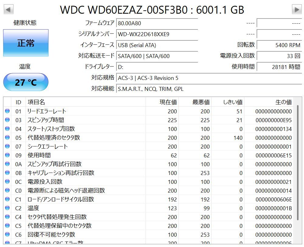 HDD 6TB WD Blue3.5インチ 内蔵HDD WD60EZAZ