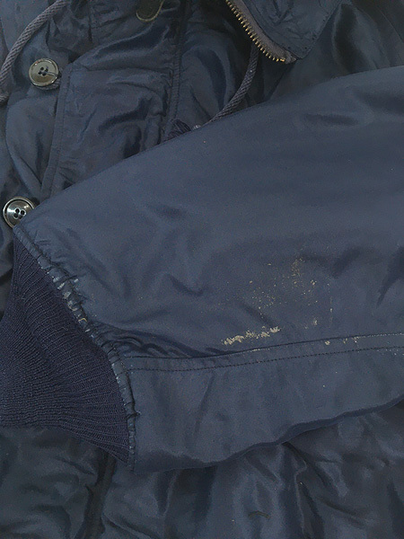 フード先のアザラシファーが取り外され、フード内側のリアルファーに数ヶ所剥がれが見られます。