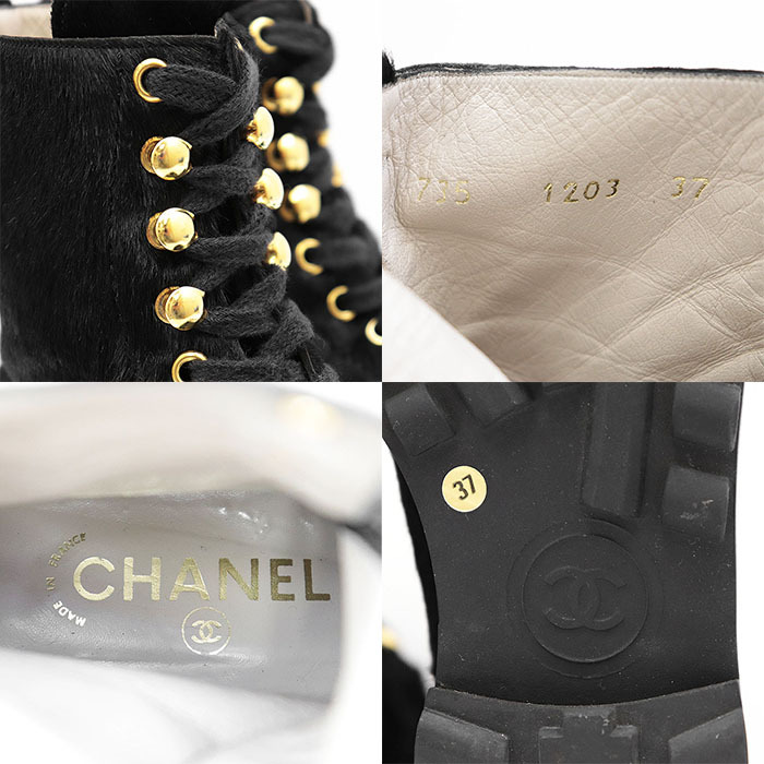シリーズCHANEL シャネル アンクルブーツ ハラコ COCOマーク レースアップ ゴールドアイレット シューズ レディース 37 黒 フランス製