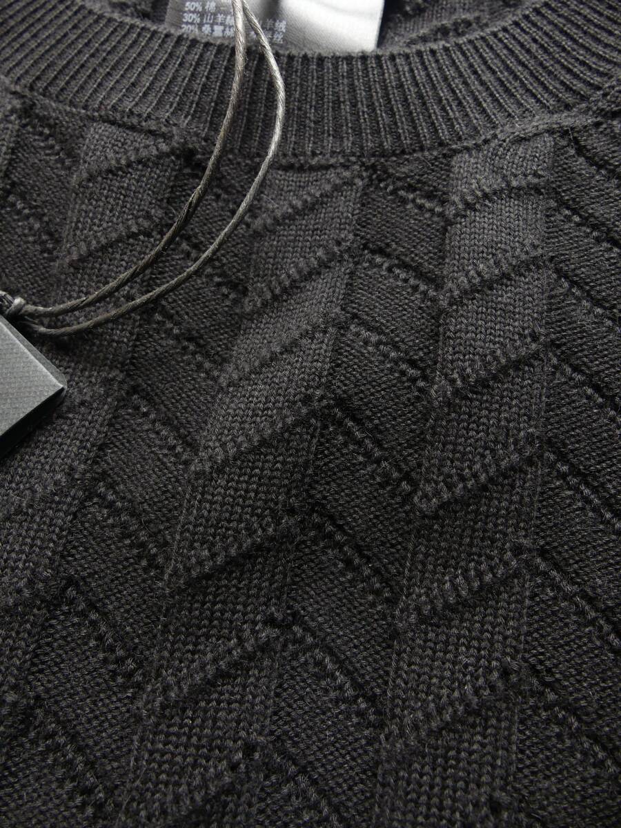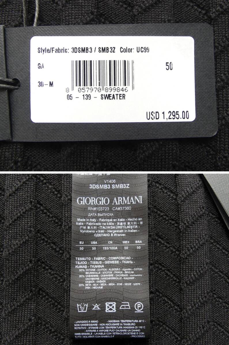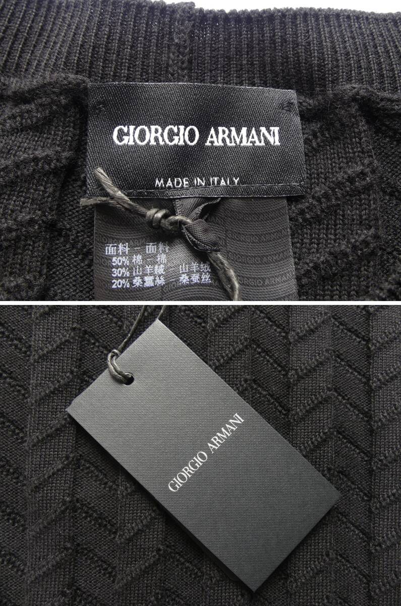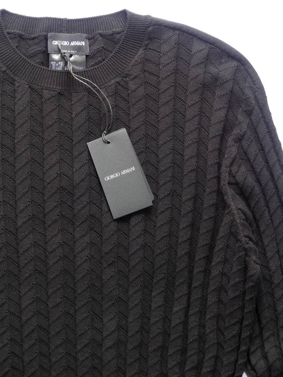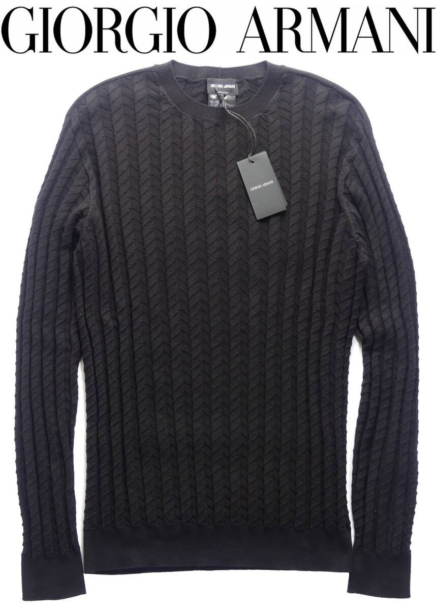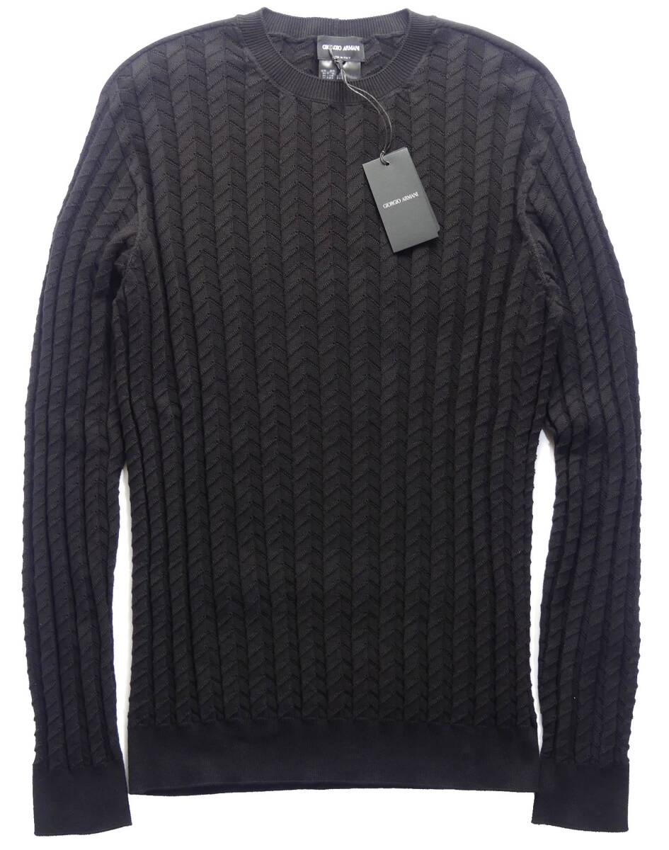 秋冬春205,000円新品GIORGIO ARMANIアルマーニ★編みテクニックで表情を最大限に引き出した技ありシェブロン黒ニット【50=日本M~L】