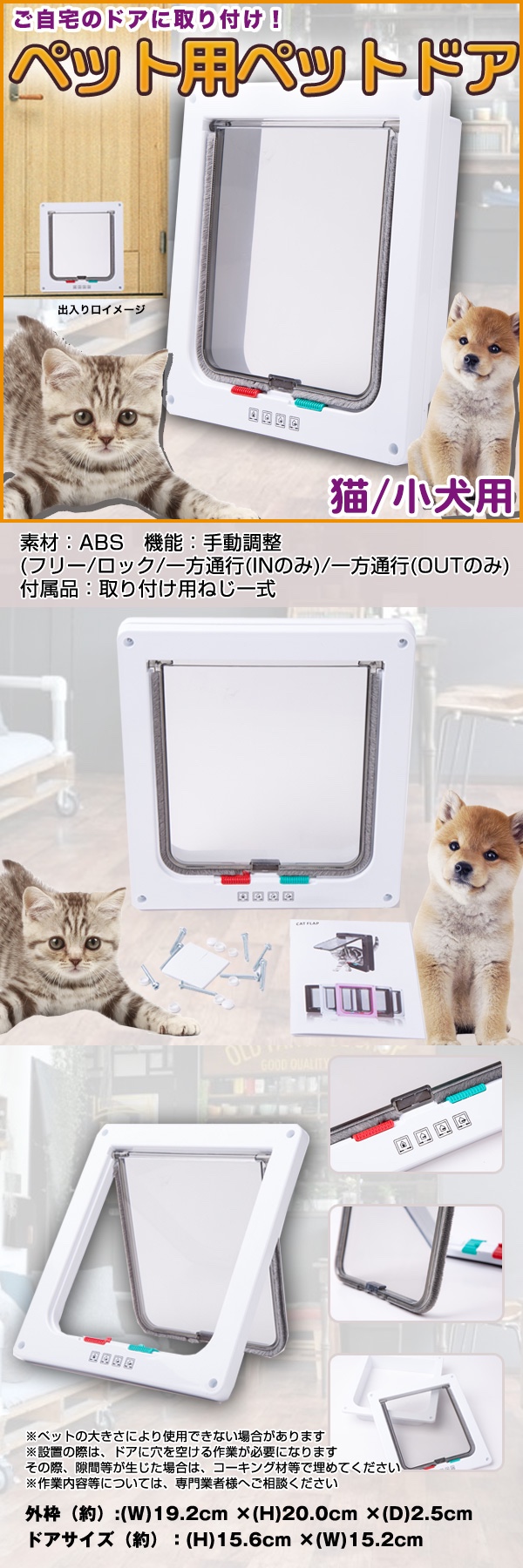 ★ ペットドア ペット用 猫 小犬 小型ペット 出入り口 白 ホワイト 可愛い 勝手口 フラップ ドア 一方通行 猫扉 冷暖房対策 小型犬