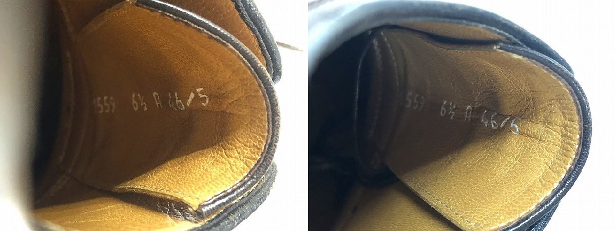 | コンディション | 履き口などスレ、ウェルト部分に2mmほどのキズがございます。 靴裏かかと部分にすり減りがございます。 他、画像をご確認下さい。 ※現状渡しとさせていただきますので画像をご覧いただき ご理解いただける方のご入札をお願いいたします。 ※撮影時の照明や、使用されているPCモニターなどにより 画像と実物の色相が異なる場合がありますので予めご了承下さい。 |
