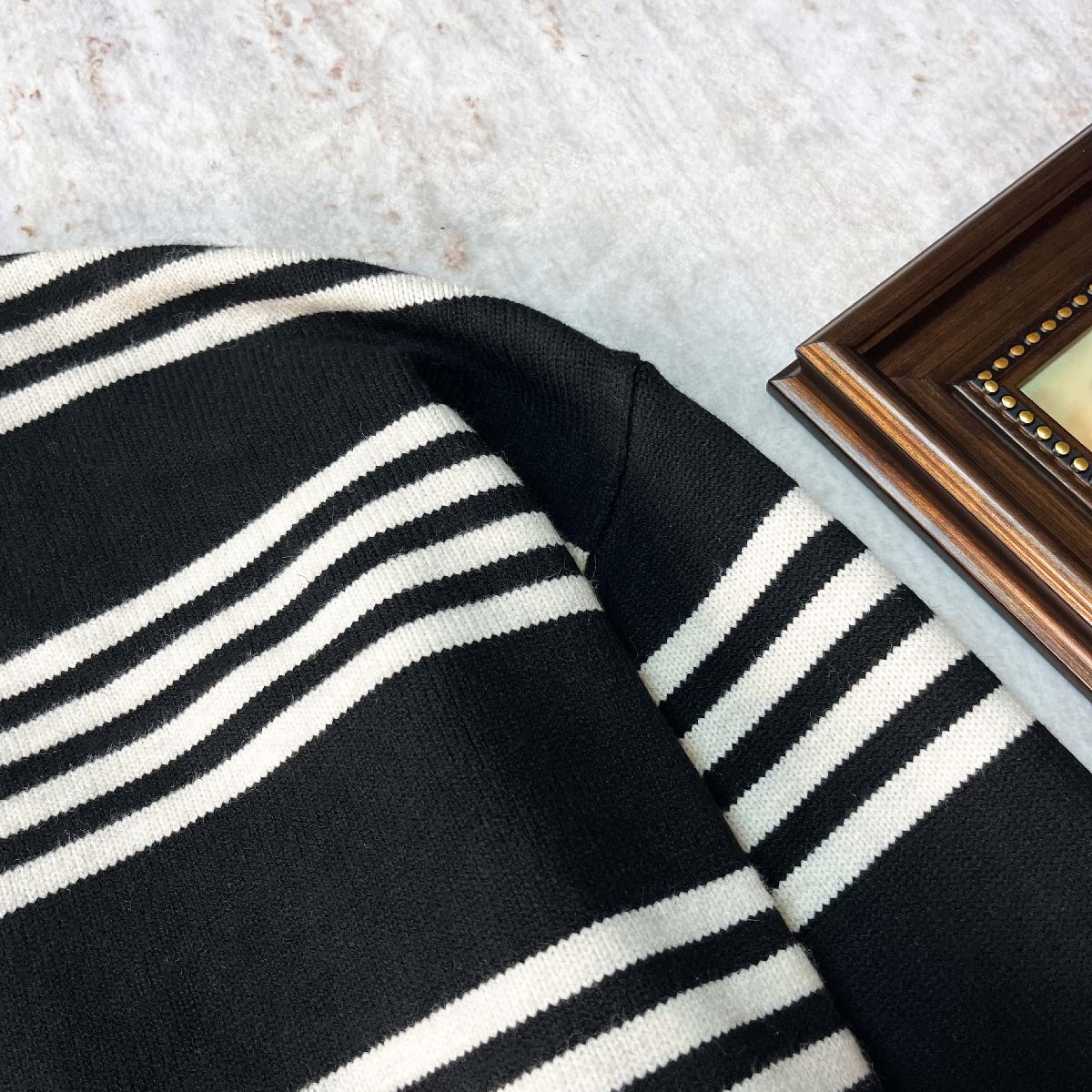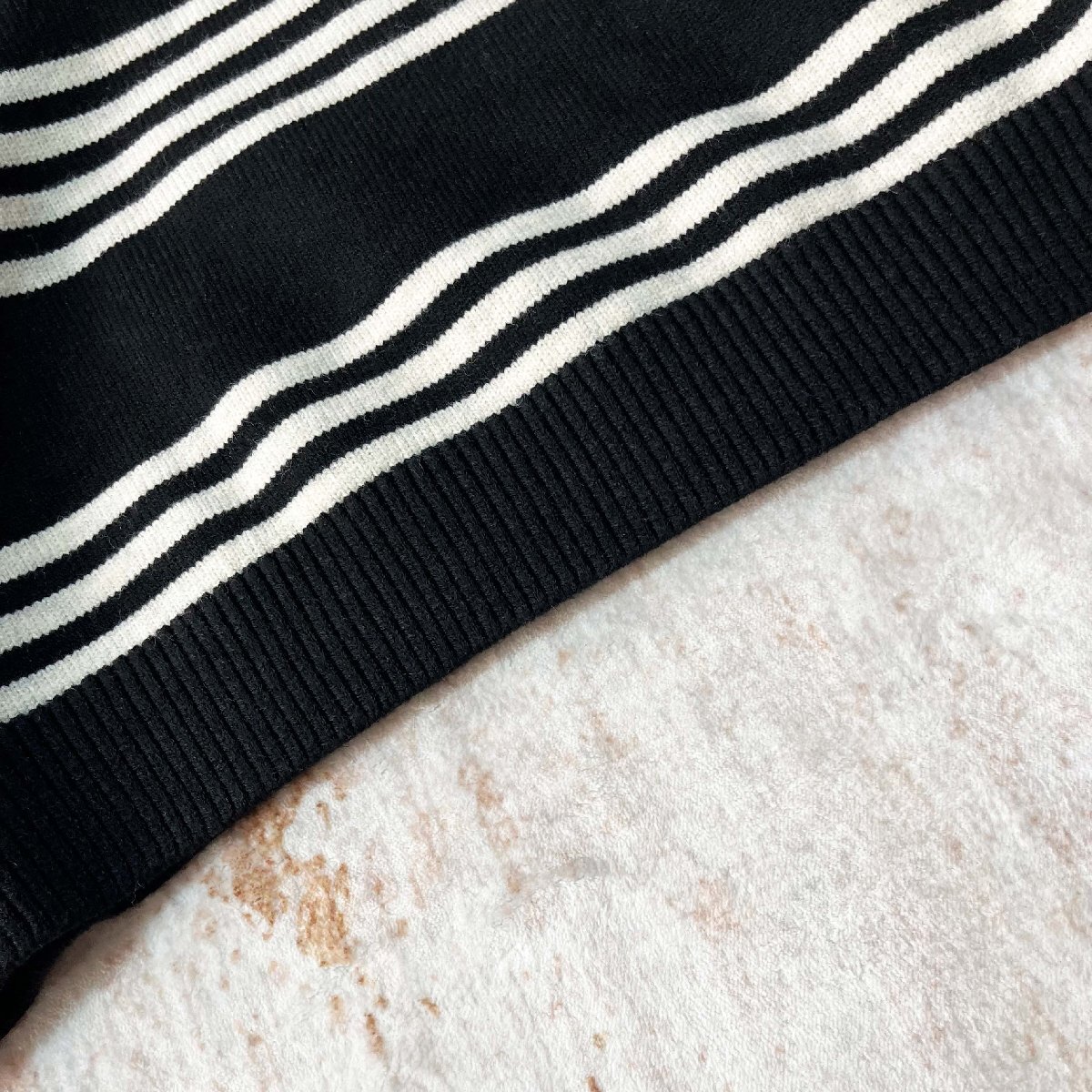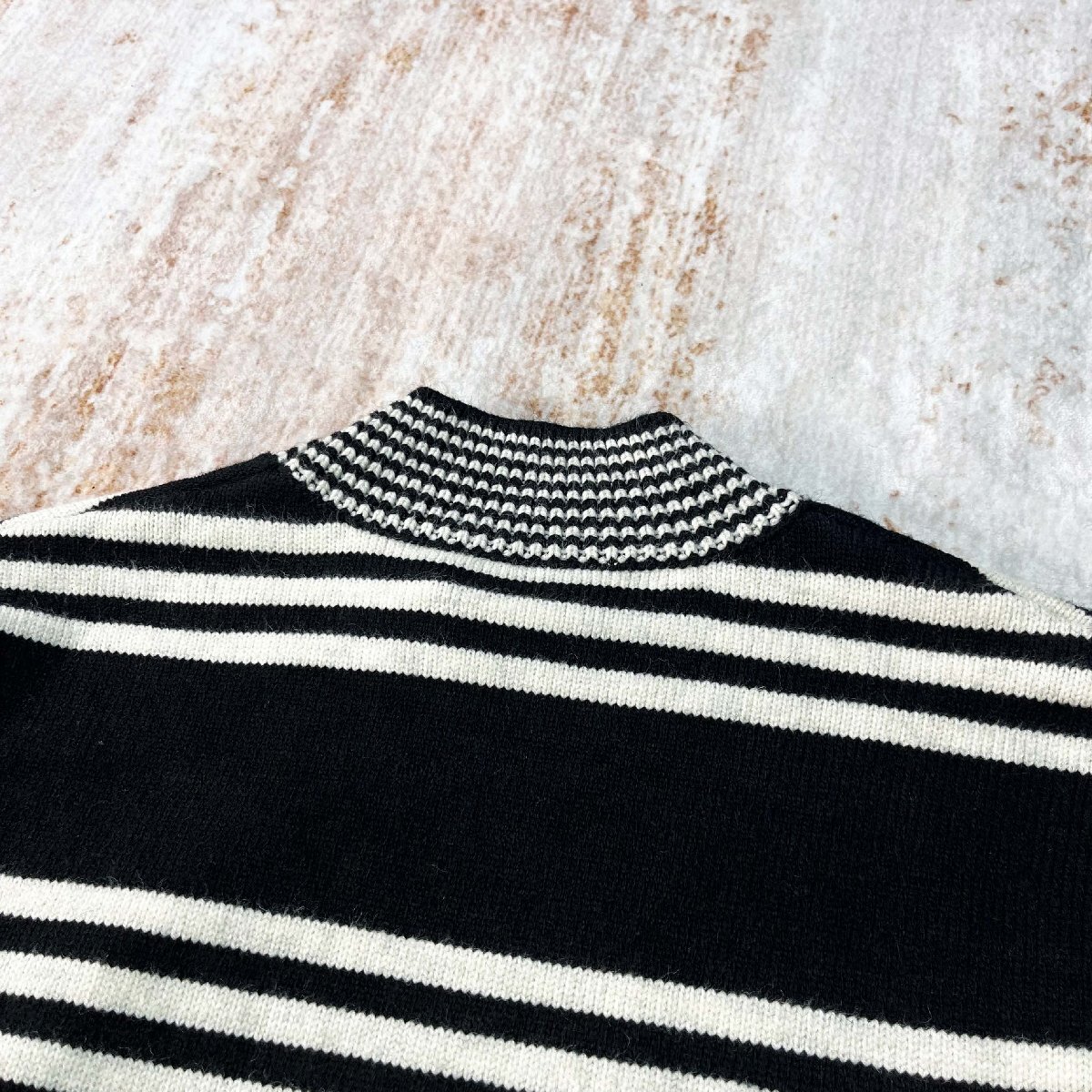 カジュアルながらも洗練された印象を与えるストライプデ柄が特徴の、どんなコーデにも合わせやすい万能アイテムです。優れた保温性と弾力性、緻密な織り、全体のラインは滑らかで、様々な人が着ることができ、着回し力が抜群も特徴です。袖口と裾にはリブをあしらうことで冷気から身を守るだけでなく、動きやすいです。