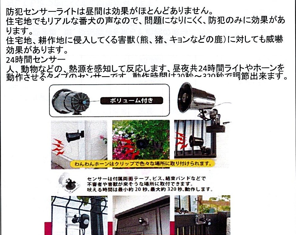 【仕様】住宅地・耕作地に侵入してくる害獣